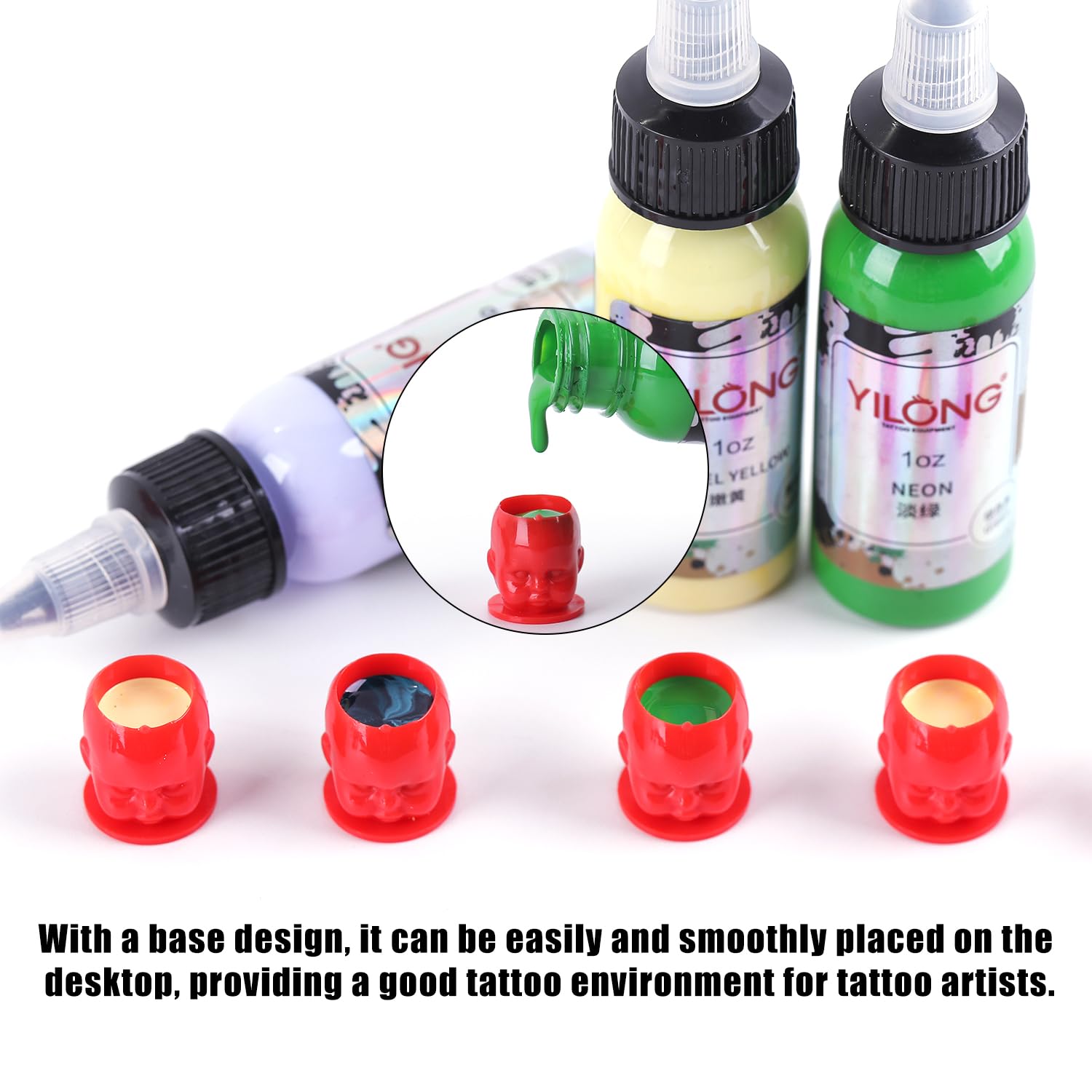 - High Quality Tattoo Ink Cap: These ink cups are made of high-quality plastic, with high hardness, anti slip, and not easily deformed. Unique in appearance, each tattoo cup is made in the shape of a doll, arousing your passion for tattoo art.
