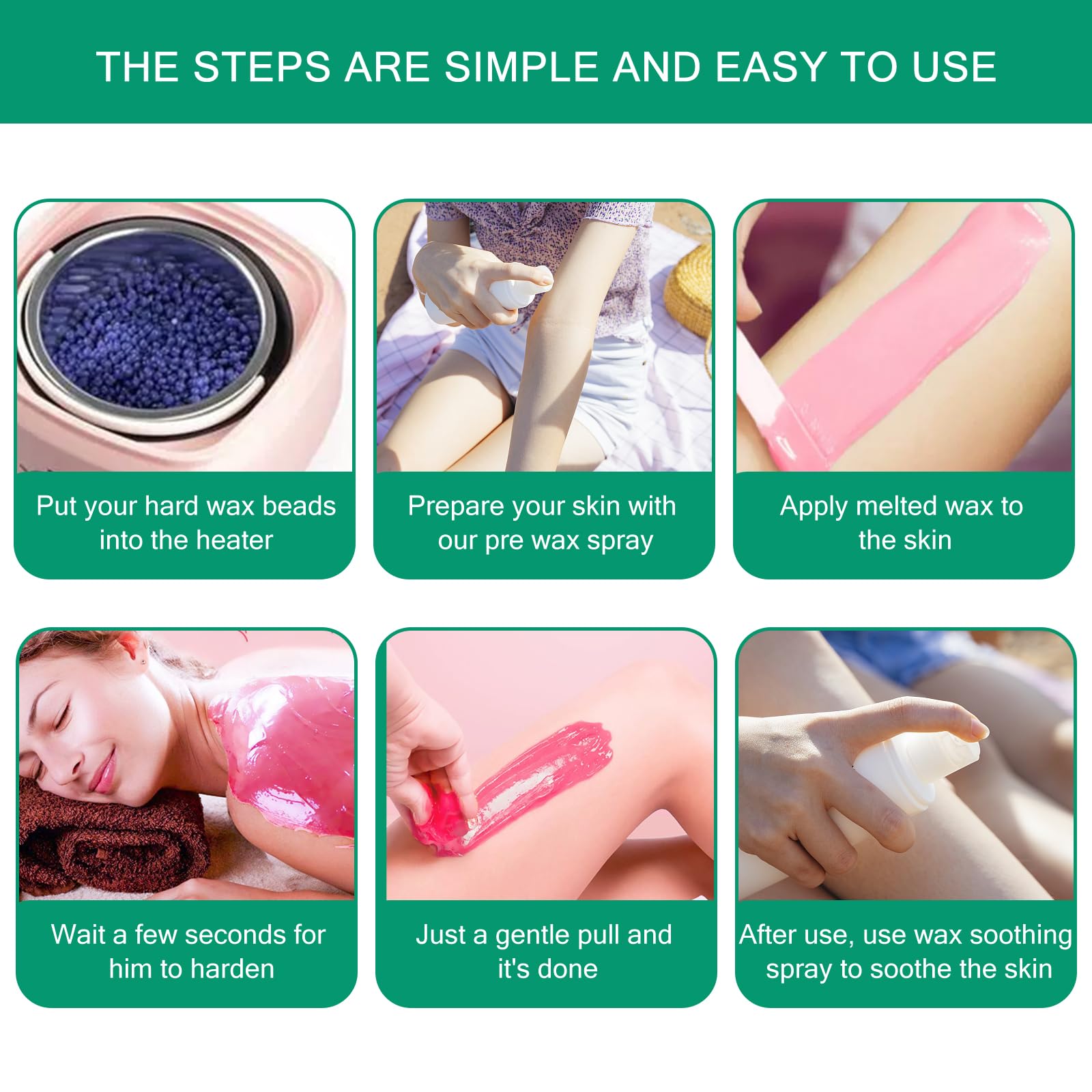 - HARD WAX - WAXING BEADS :Our hair removal wax beads use natural ingredients to efficiently remove hair without irritating or causing pain to the skin, allowing you to enjoy a comfortable hair removal experience.