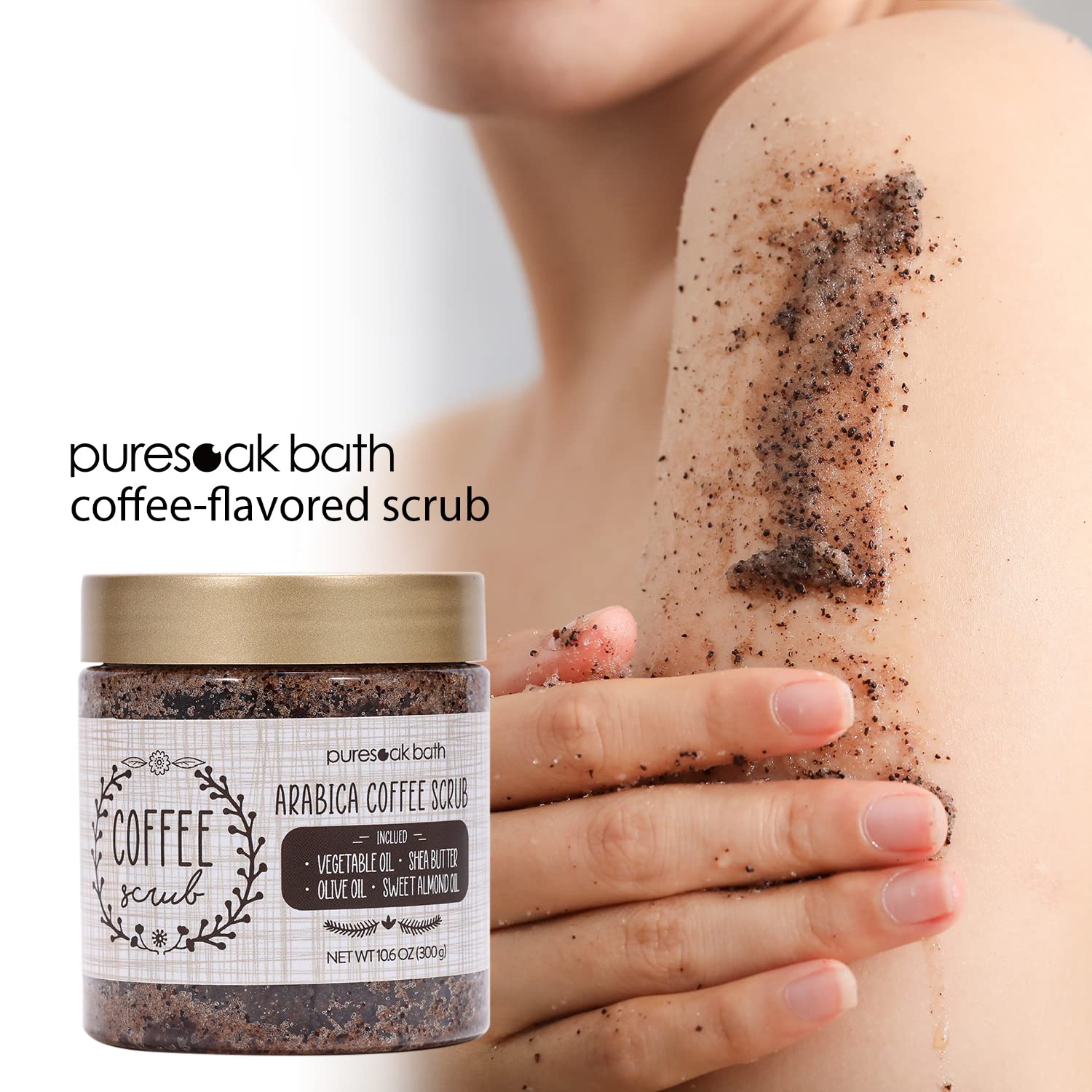 - 【☕PURE NATURAL INGREDIENTS】 : Puresoak Bath products are made with high-quality, ingredients that will treat and moisturize skin, never irritate. The natural ingredients in this scrub help restore skin elasticity and suppleness. Feel younger, better. Enjoy our bath products on every skin type.