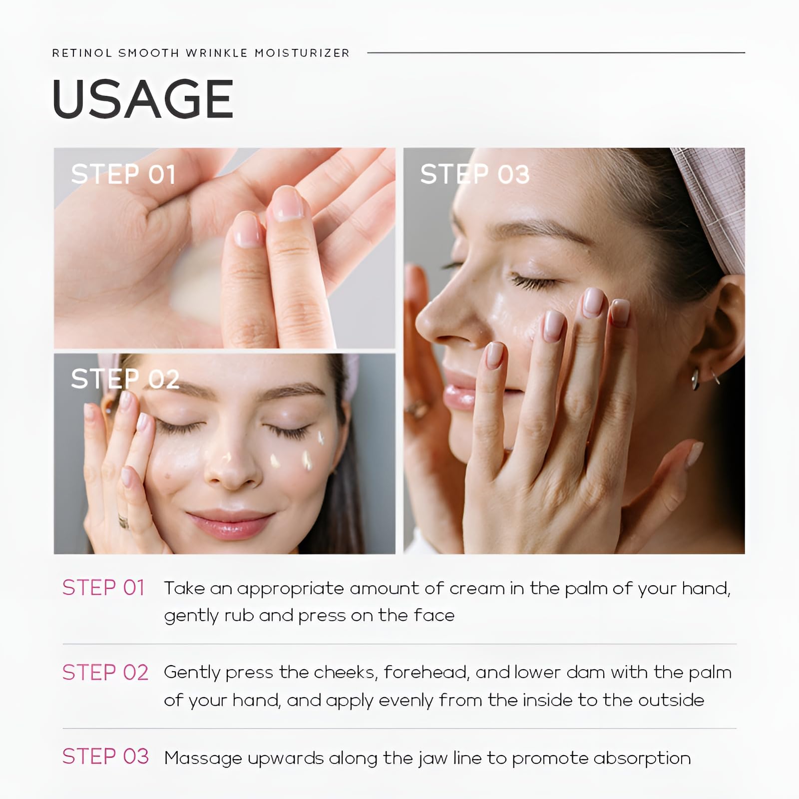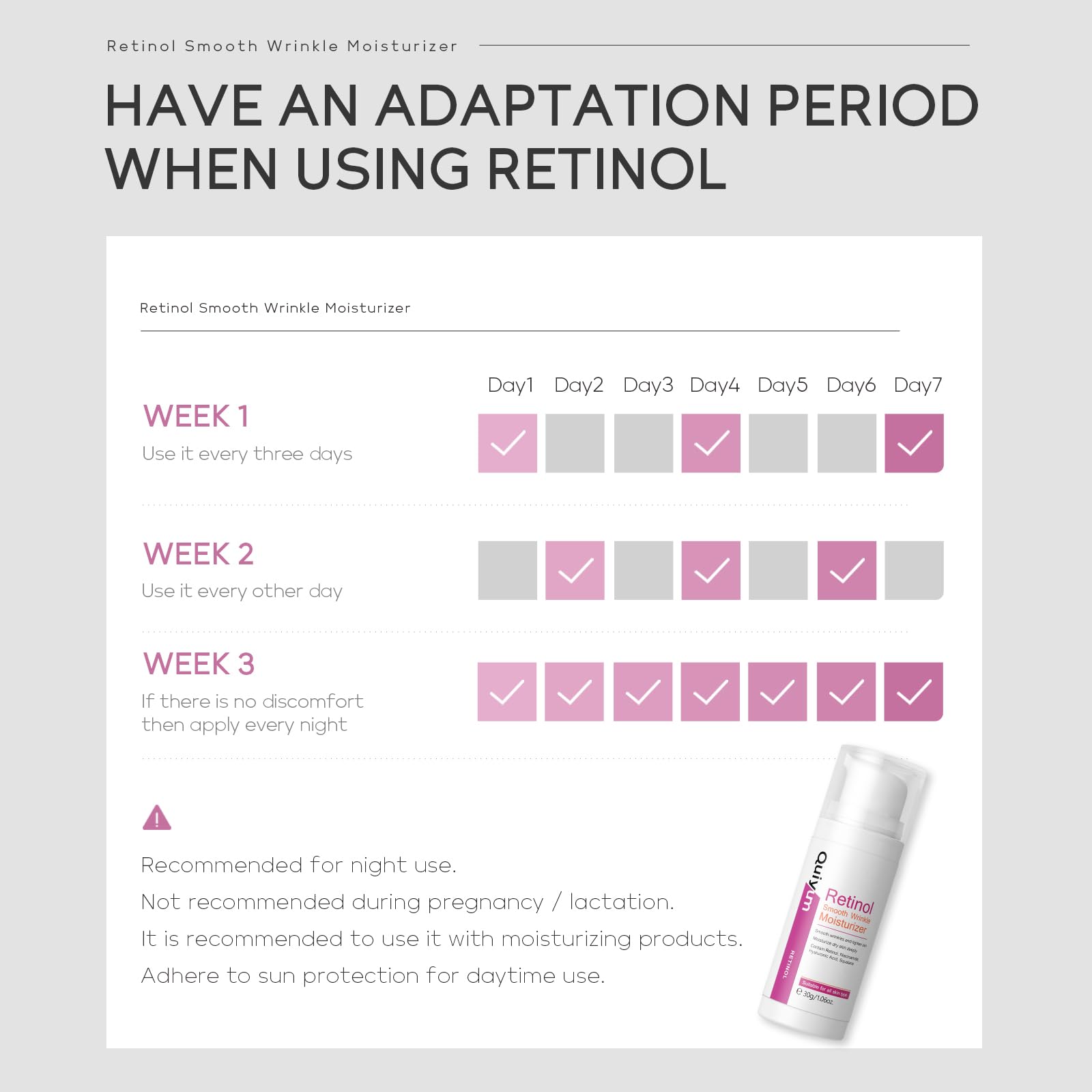 - 【Day & Night Moisturizer】Integrate Quiyum Retinol Anti Wrinkle Moisturizer for Face into your daily skincare regimen for both morning and evening use. Retinol acts as a crucial component in preventing premature aging, making it an essential part of your anti wrinkle routine. Suitable for all skin types and ages, Quiyum Retinol Face Moisturizer Set helps achieve a youthful appearance. For daytime use, pair with SPF 30 sunscreen.