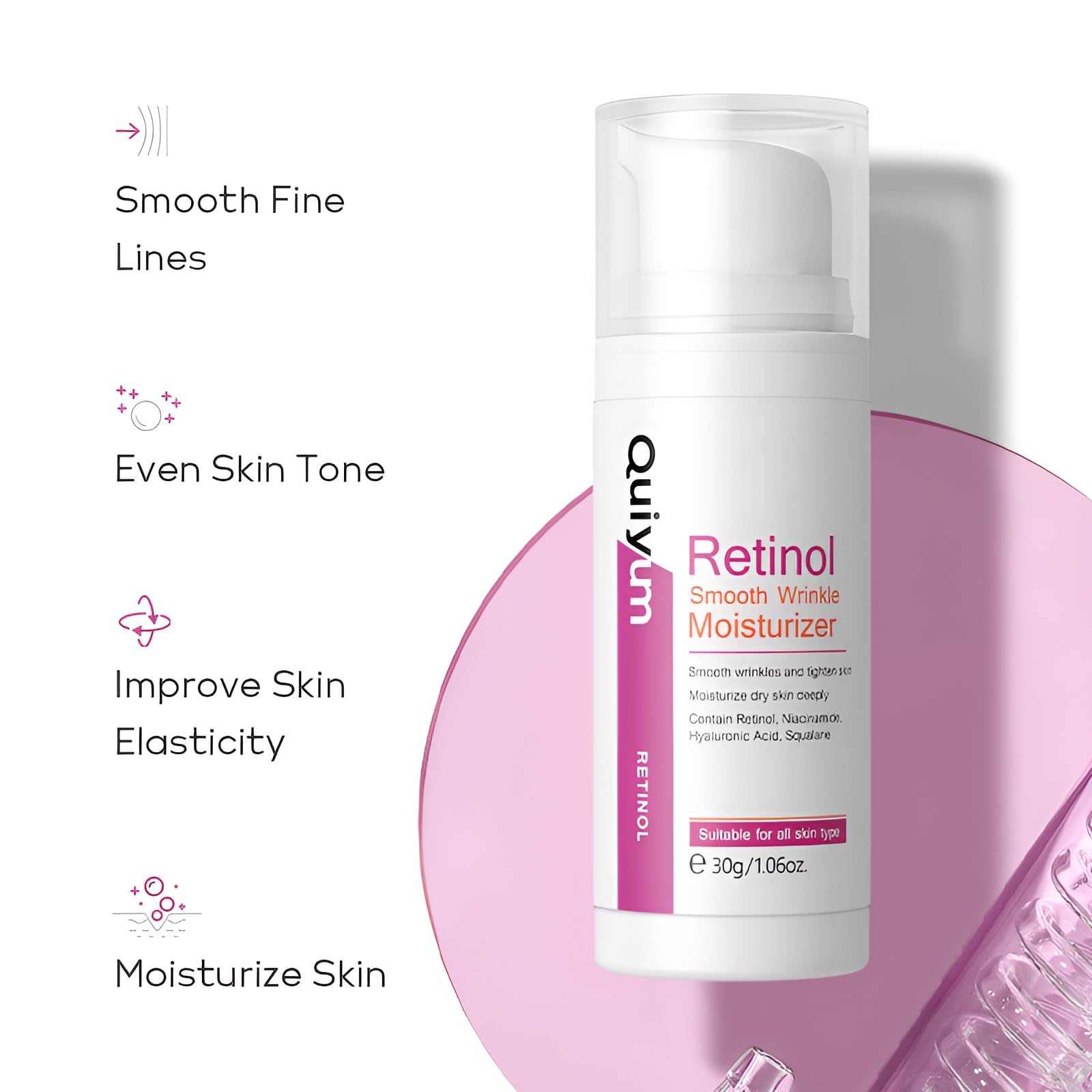 - 【Advanced Retinol Formula】Quiyum Retinol Cream for Face combines dermatologist-tested retinol and hyaluronic acid to deeply replenish and rejuvenate your skin. This potent combination helps smooth wrinkles, improve elasticity, and restore youthful radiance from within.