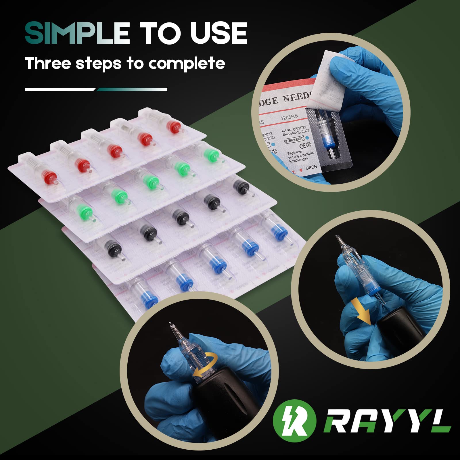 - High Quality Material - Rayyl cartridges needles made by 316L surgical stainless steel and medical-grade plastic. Light clear colors tip body to easy to observe the needle striking, needle bar design is more advanced.