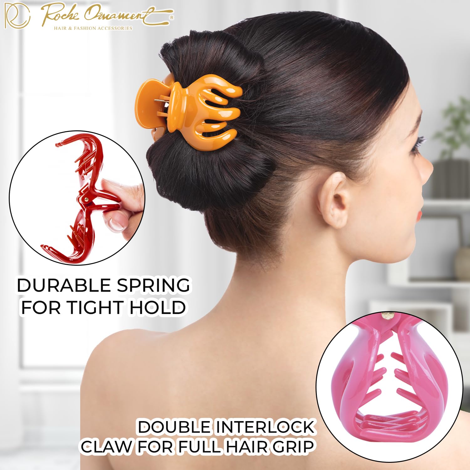 - Style – Premium hair accessory clips for women girls ladies; solid spring hinge grip with interlocking teeth to hold hair in place; hair clincher for comfortable hold without hair pulling breakage damage crease dent; sturdy durable crown clips