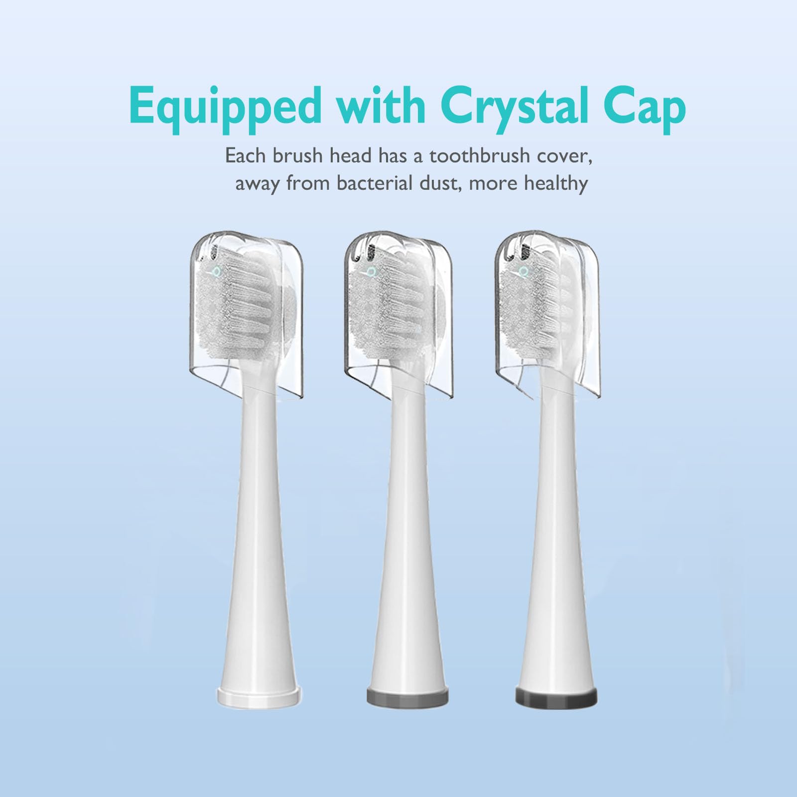 - Equipped with a crystal cap - Each toothbrush head is provided with a crystal caps for hygienic storage and travel