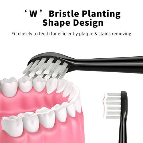 - 【Curved Shape Bristle】: Shape of bristle is designed in 'W' shape thus the head can fit to teeth well. A great shape for efficiently brush and removing more plaque and stains.