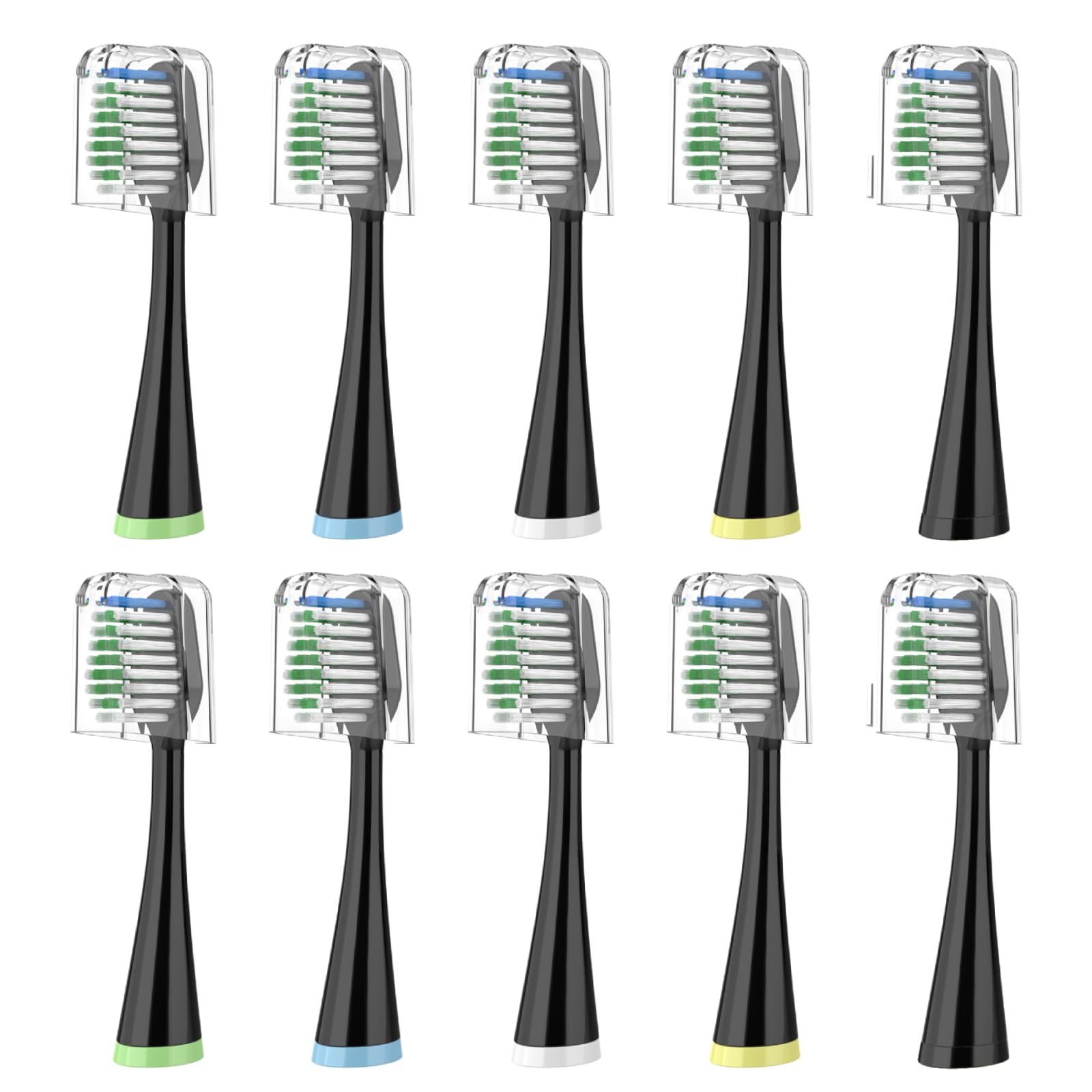 - WHAT YOU GOT: 10 toothbrush heads with 10 toothbrush covers, color coded to distinguish.