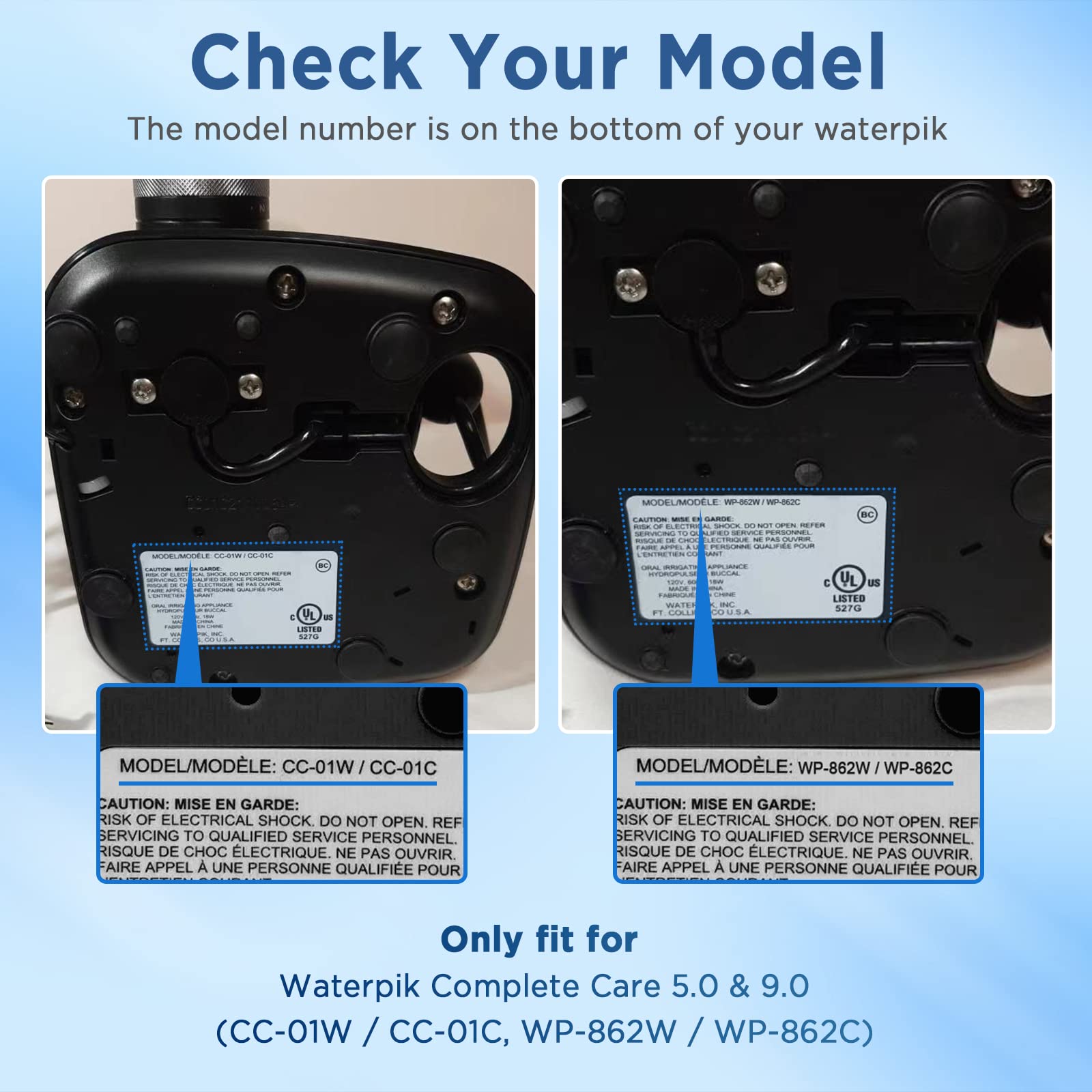 - WATER PIK COMPATIBILE MODELS: Compatible with Water Pik Complete Care 9.0 (CC-01CD012-2) and Water Pik Complete Care 5.0 (WP-862, WP-872, WP-877, WP-882, WP-892) toothbrush models.