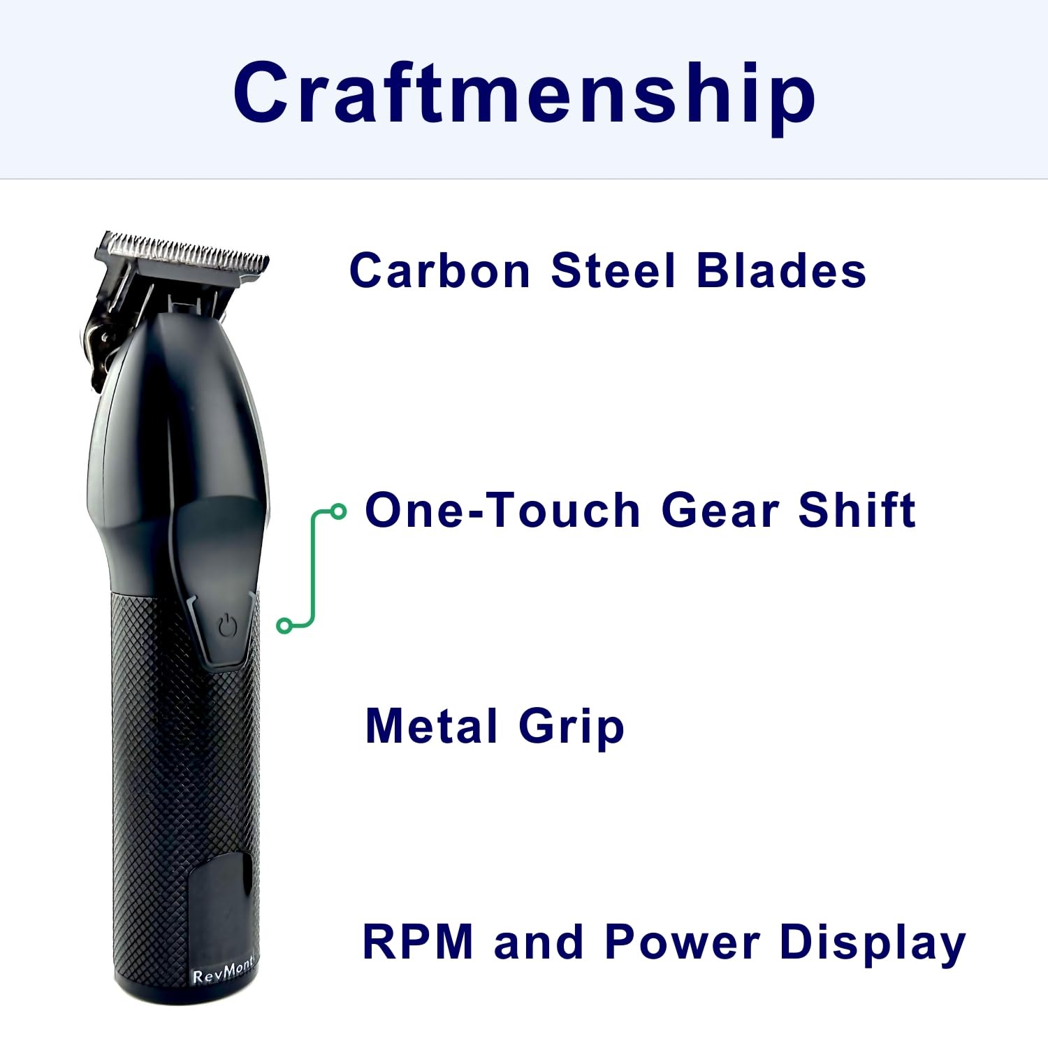 RevMont Multi-Speed Clipper Set, Gear Shifting, 20-Piece Grooming Kit for Men, T-Blade Plus King Clipper, Rechargeable Hair Trimmers, Metal Grip, Carbon Steel Blades, All-in-one Barber Set