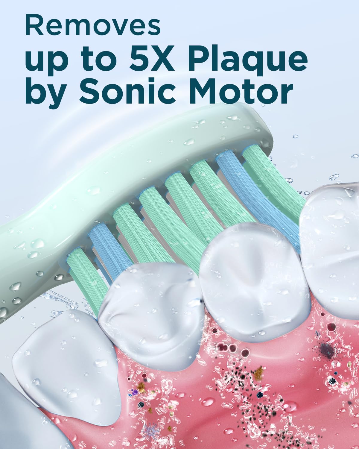 - Superior Cleaning Power: The sonic electric toothbrush delivers an impressive 41,000 high-frequency vibrations per minute, providing a deep and thorough clean that is 5 times more effective than low-frequency electric toothbrushes for both adults and kids. Clean up to 5X the plaque and surface stains for a healthier, brighter smile.