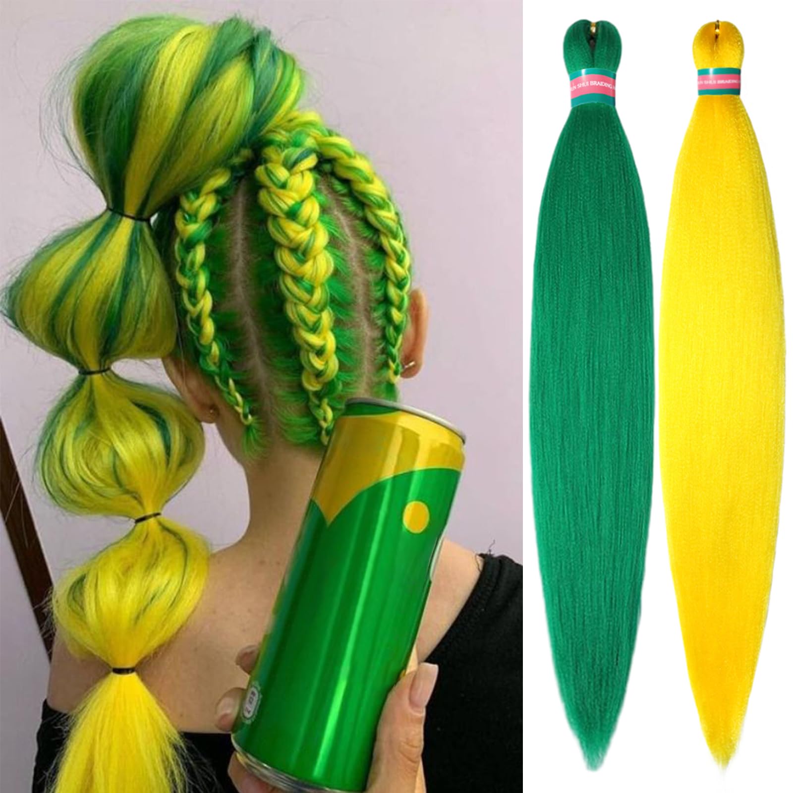 RUN SHUI Green+Yellow Pre stretched Braiding Hair 2 Packs Pre feathered Braid Hair Extensions 30 Inches Hair Braids
