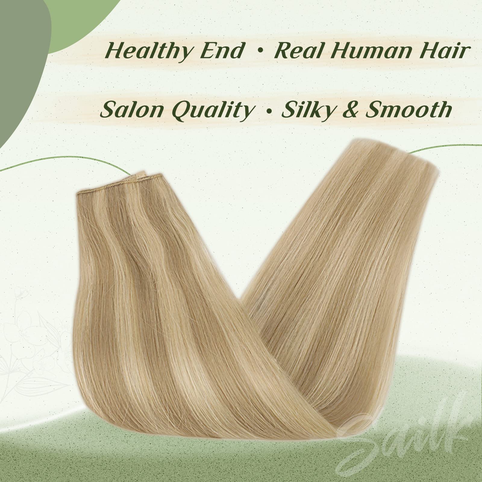 Sailk Blonde Wire Hair Extensions Human Hair Real Fish Line Extensions Dirty Blonde Highlight Light Blonde Natural Invisible Hairpieces Hair Extensions 20 Inch 100g