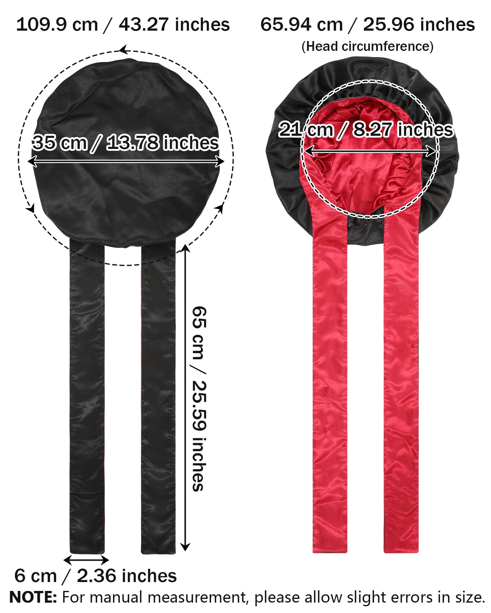 Satin Bonnet Silk Hair Bonnets for Women Curly Hair Wrap for Sleeping Cap Reversible Bonnet with Tie Band Night Cap Double Layer Sleep Cap for Curly Hair (Black + Red)