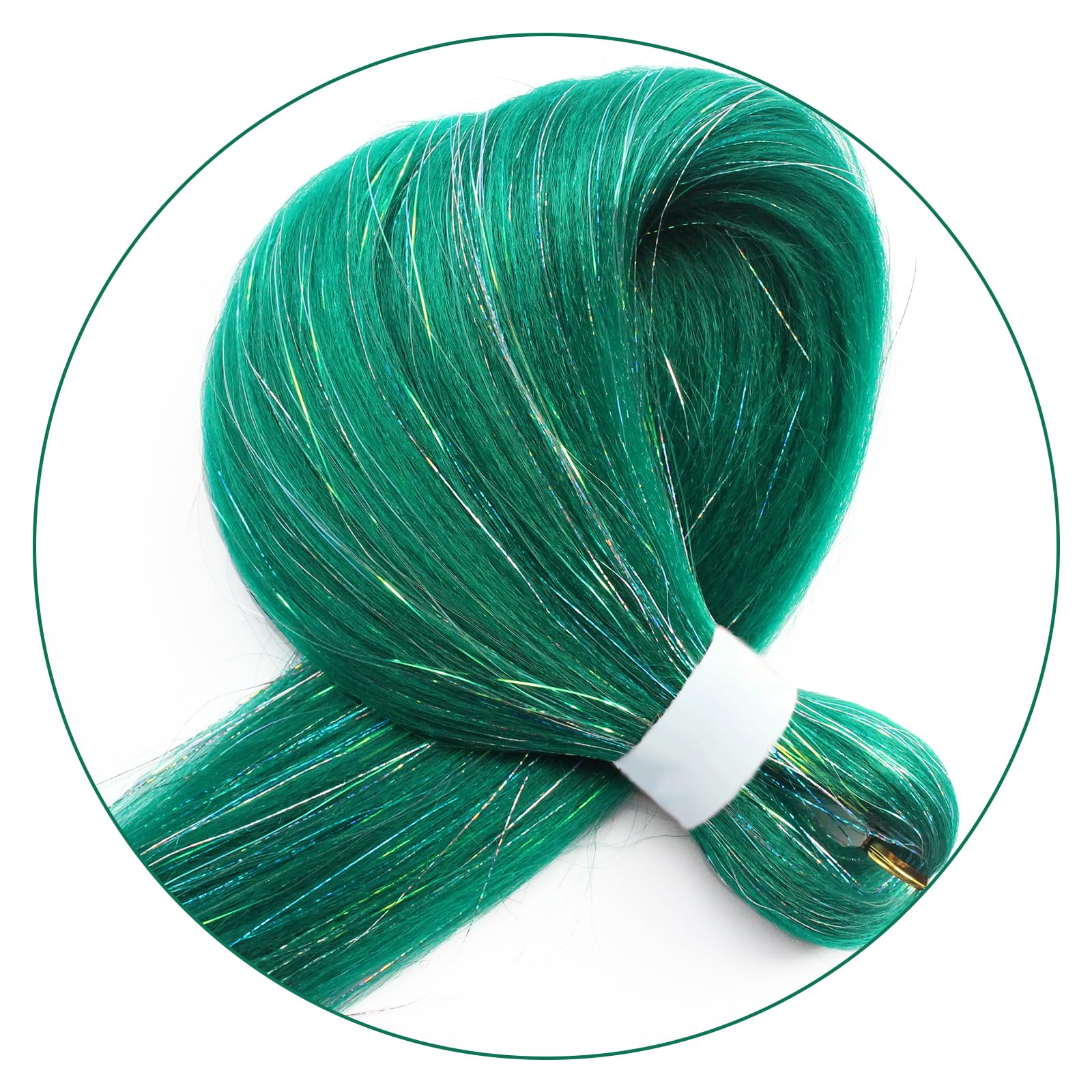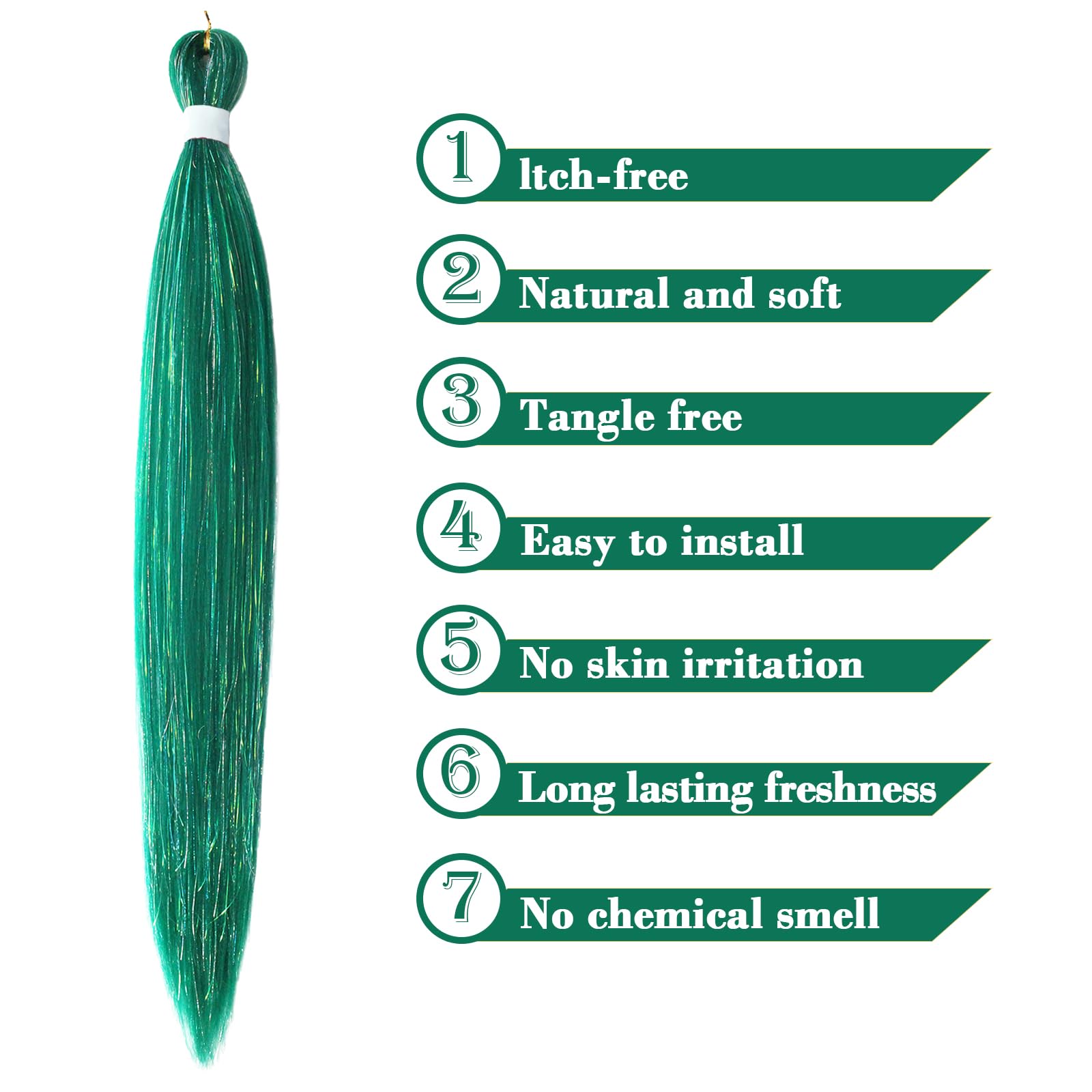 Savasana Green with Tinsel Pre stretched Braiding Hair, 26 Inches Box Braids Hair Extensions, 3 Packs Yaki Texture Braiding Hair Pre stretched