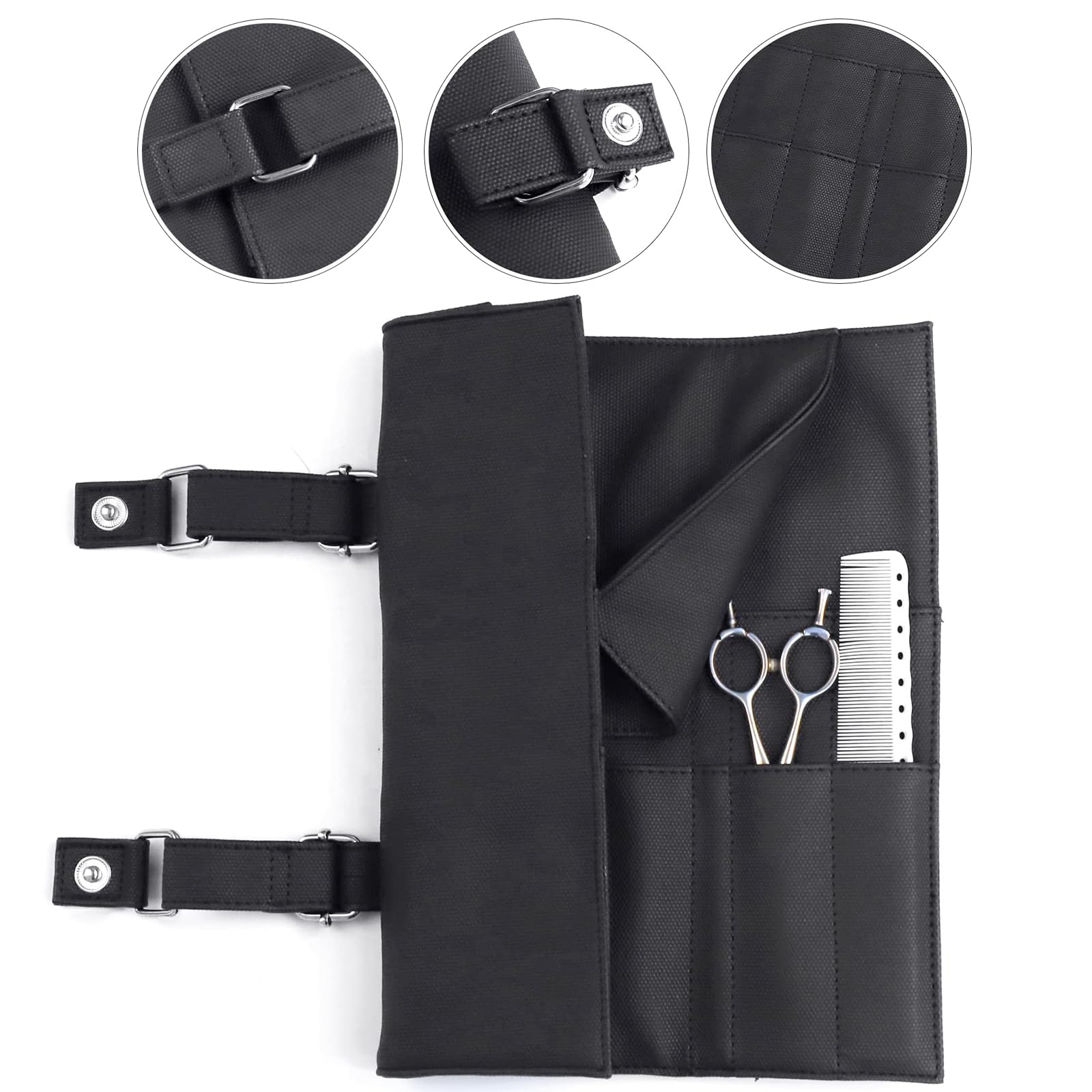 - ✅ Scissors Pouch Bag: made of high quality PU leather, snap closure, durable and lightweight. Easy for you to use, protects your hairdressing tools from being damaged and scratched.