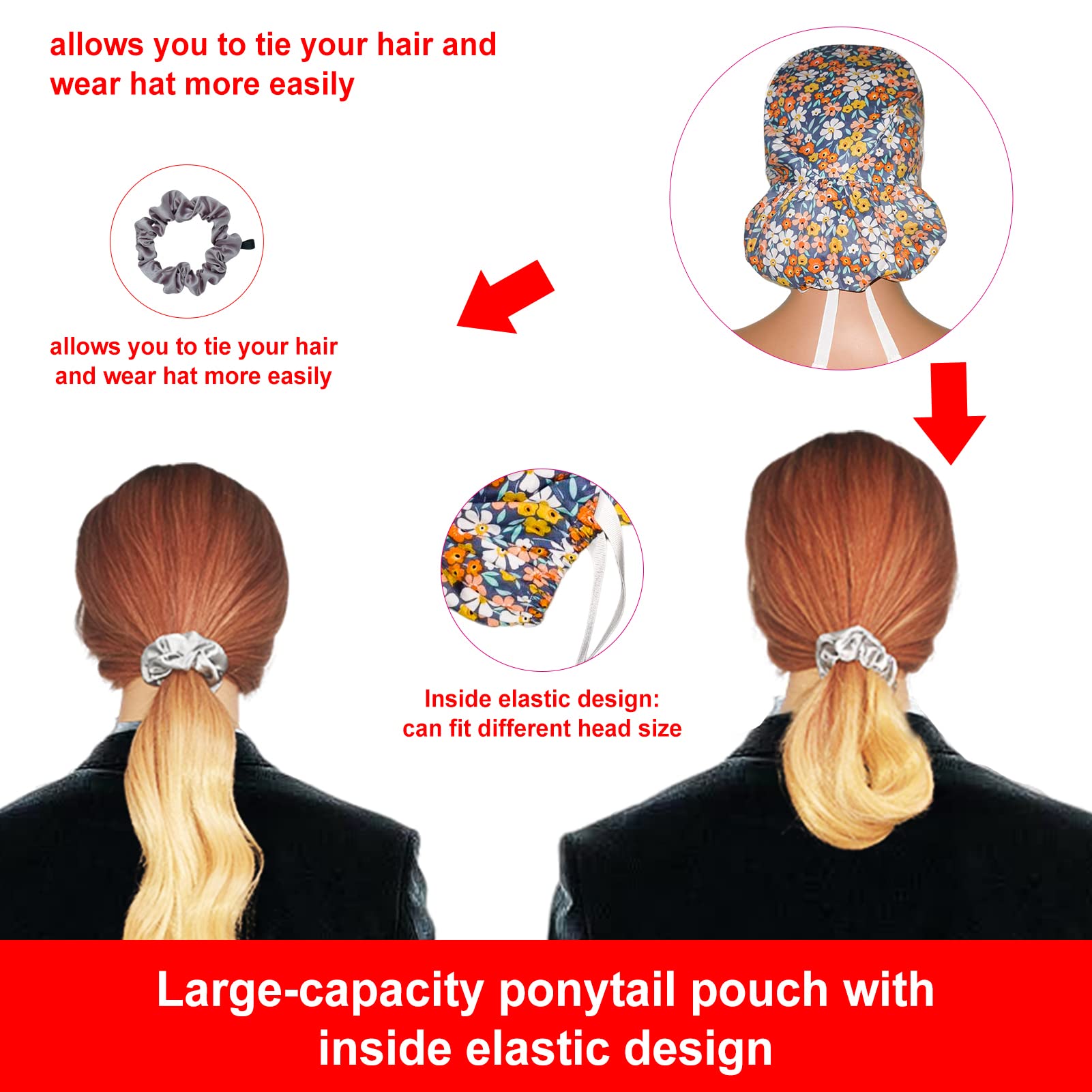 - 【MULTIPURPOSE】: This scrub caps women ponytail is adjustable, it is very suitable for different head shapes and hair types. This nurse caps for women can easily fix and lock all long and thick hair, it is widely used in our daily life, it is convenient to put on and take off the hat. It's the perfect gift for co-workers, friends and family.