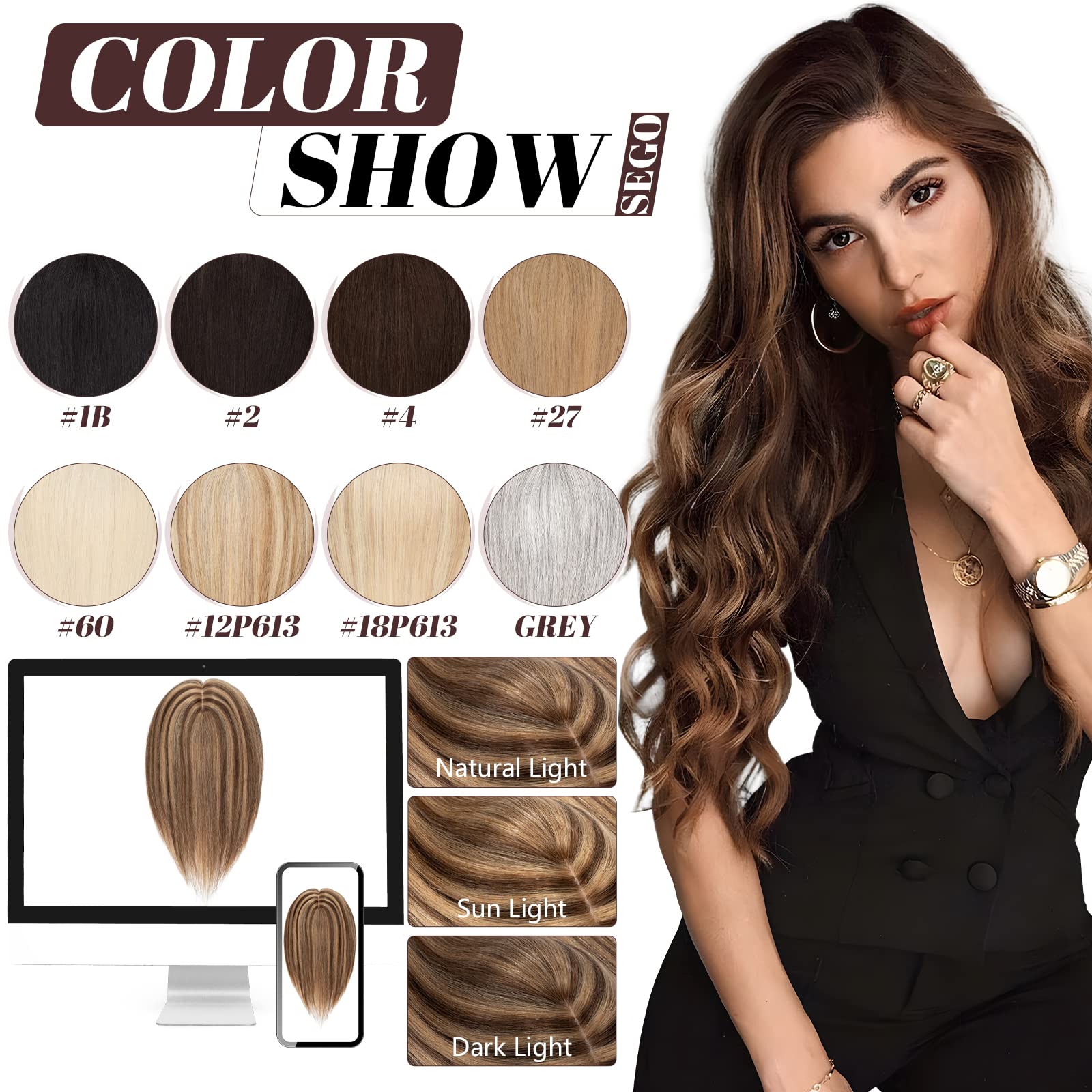 - 【Easy to Wear, Save Valuable Time】Save your time on every morning and date because it only takes 1-2 minute to put on SEGO human hair topper with 4 clips installed.Let you instantly have a charming look.