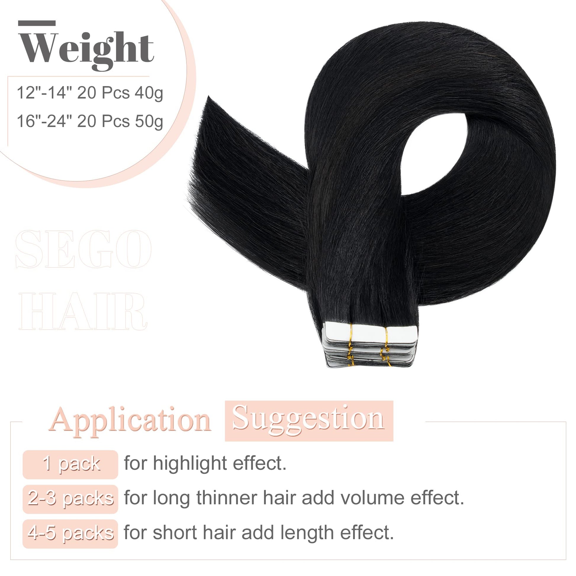 SEGO Tape in Hair Extensions Human Hair 18 Inch 100g 40pcs Natural Straight 100% Remy Rooted Seamless Skin Weft Invisible Double Sided Tape Hair for Women-Jet Black