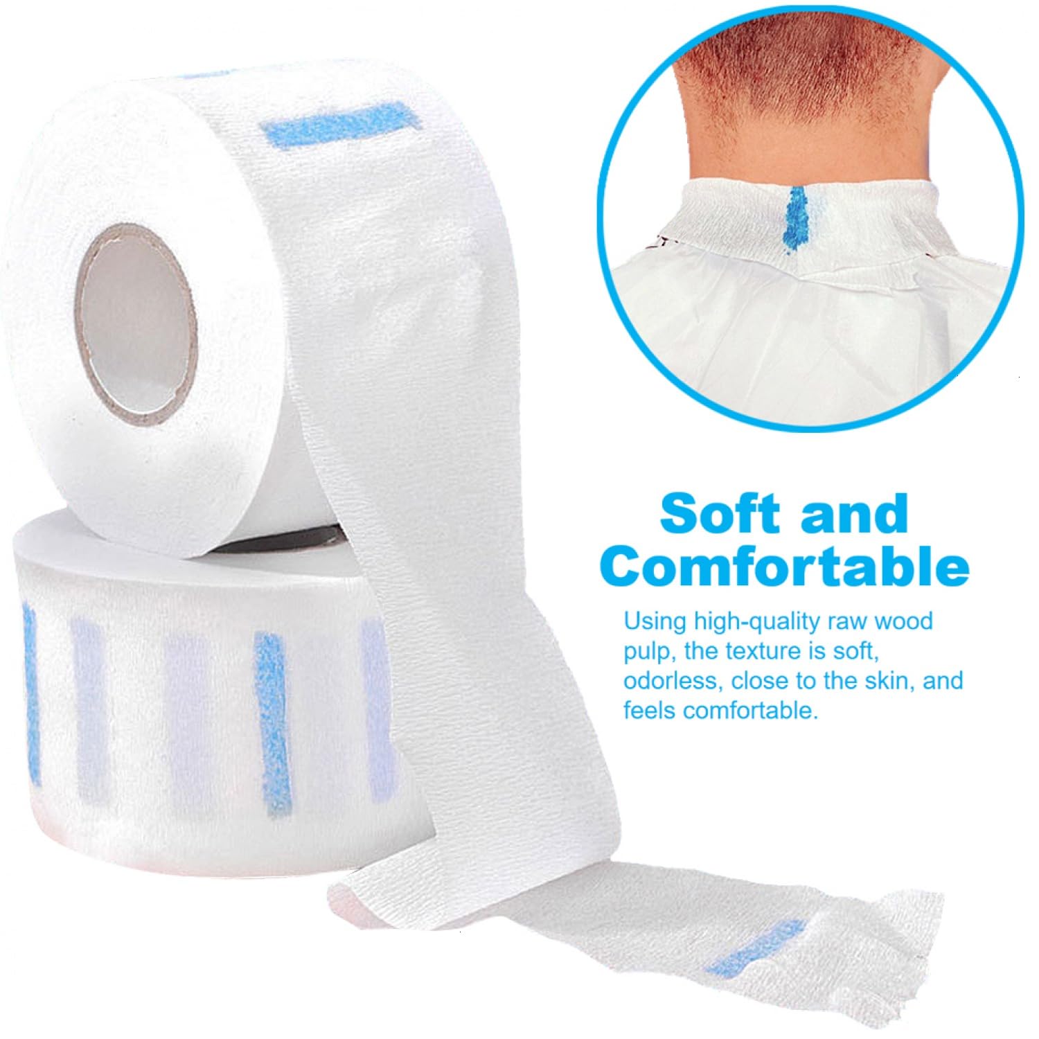 - Easy to Use: The connection point design of barber neck paper is easy to tear off, and the blue part is self-adhesive making it easy to use