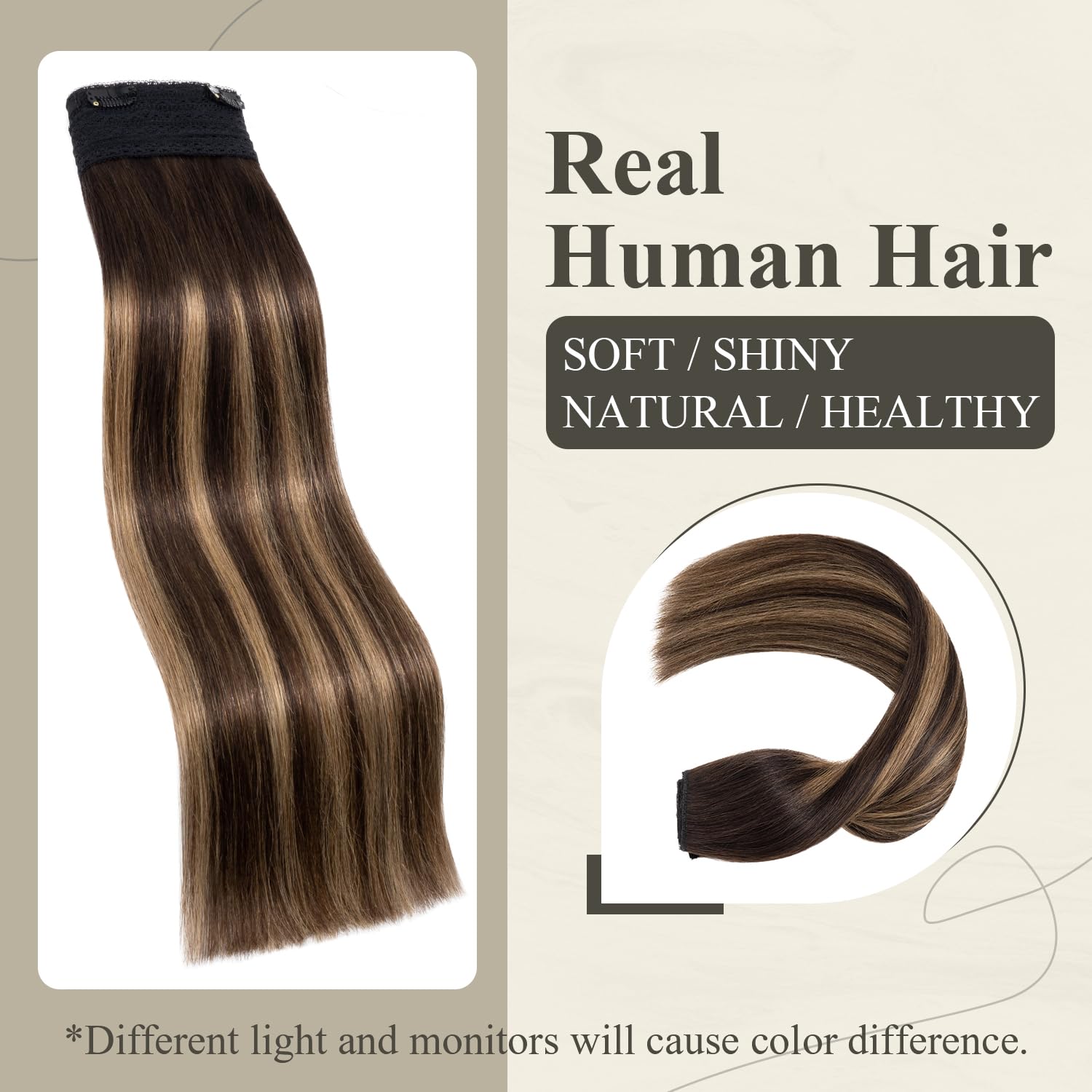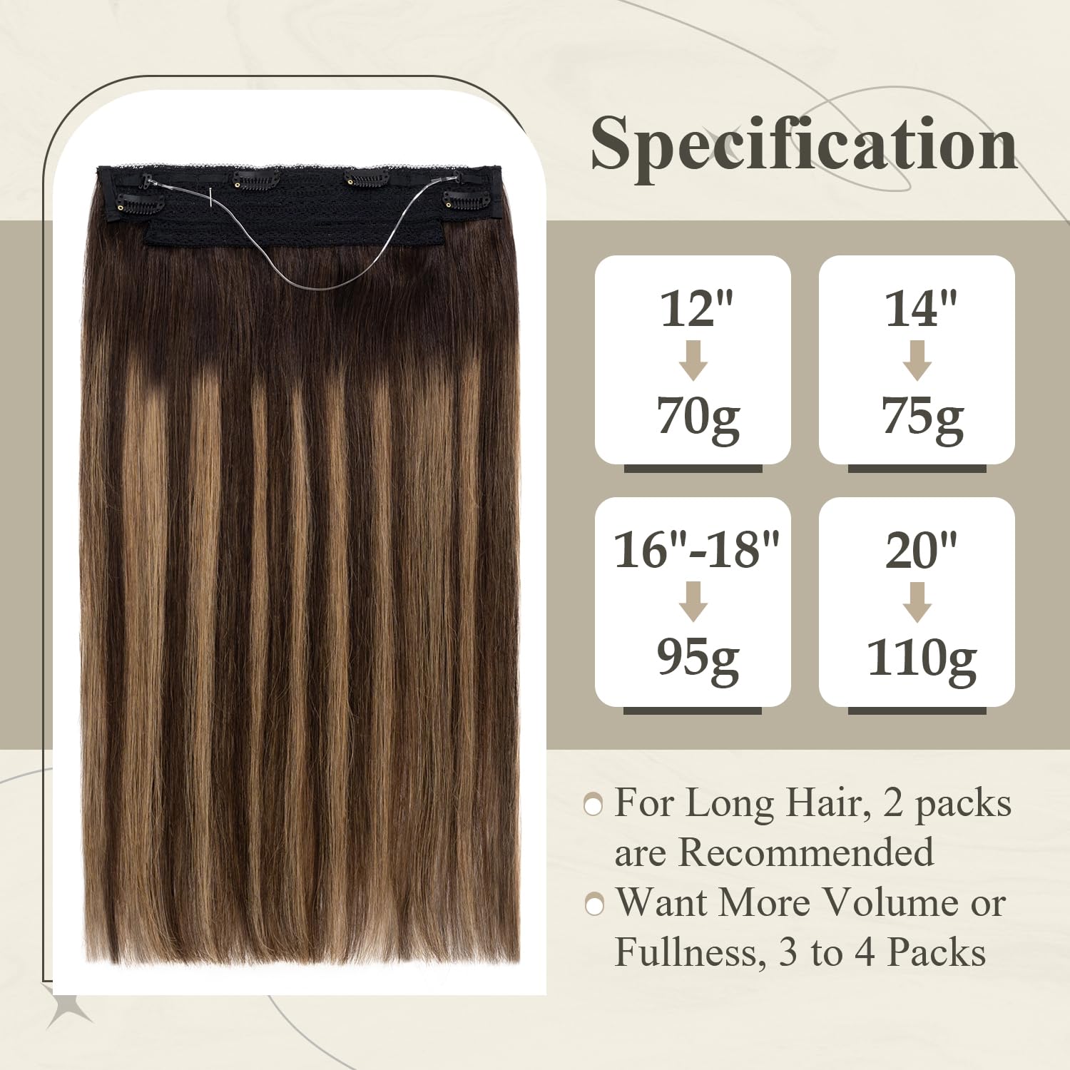 SLEEKALON Invisible Wire Hair Extensions Real Human Hair 16 Inch Dark Brown to Light linen Mix Brown Halo Hair Extensions with Clips Adjustable Fish Line Wire Hair Extensions For Women 95g,#2T2P6