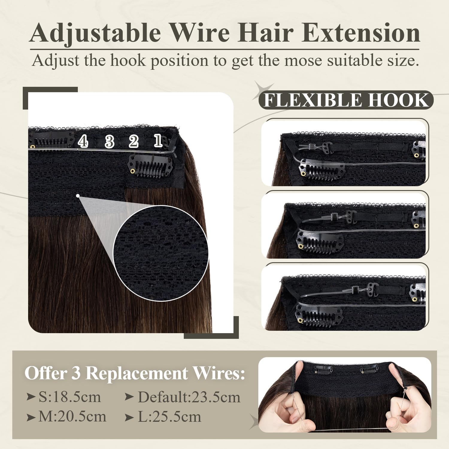 - 【Save Your Time& Instant Glamour】Wire hair extensions real human hair are super easy to apply and remove, you can add volume and length to your hair in just 3 minute and literally only 2 second to remove. Even a novice can do it. Suitable for daily work and rush appointments.