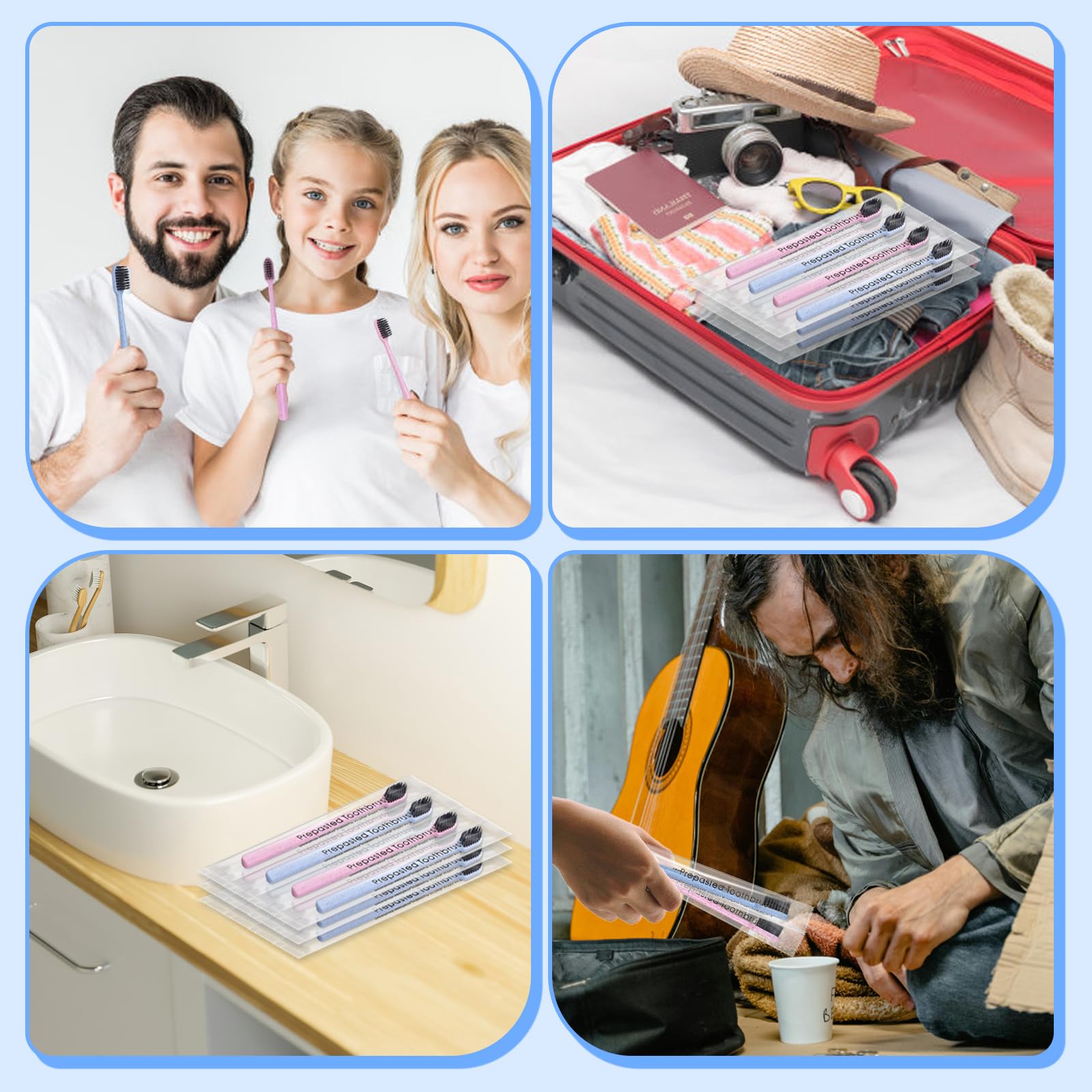 SLequipo 500Pcs Prepasted Disposable Toothbrushes Bulk Individually Wrapped Pre Pasted Soft Bristle Tooth Brush Set Travel Colorful Toothbrushes for Homeless Gift Hotel Camping Travel