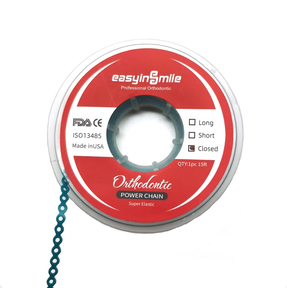 SNAWOP Dental Orthodontic Power Chain Multicolor Spool Elastic Rubber Bands for Teeth Braces (Closed, Turquoise)