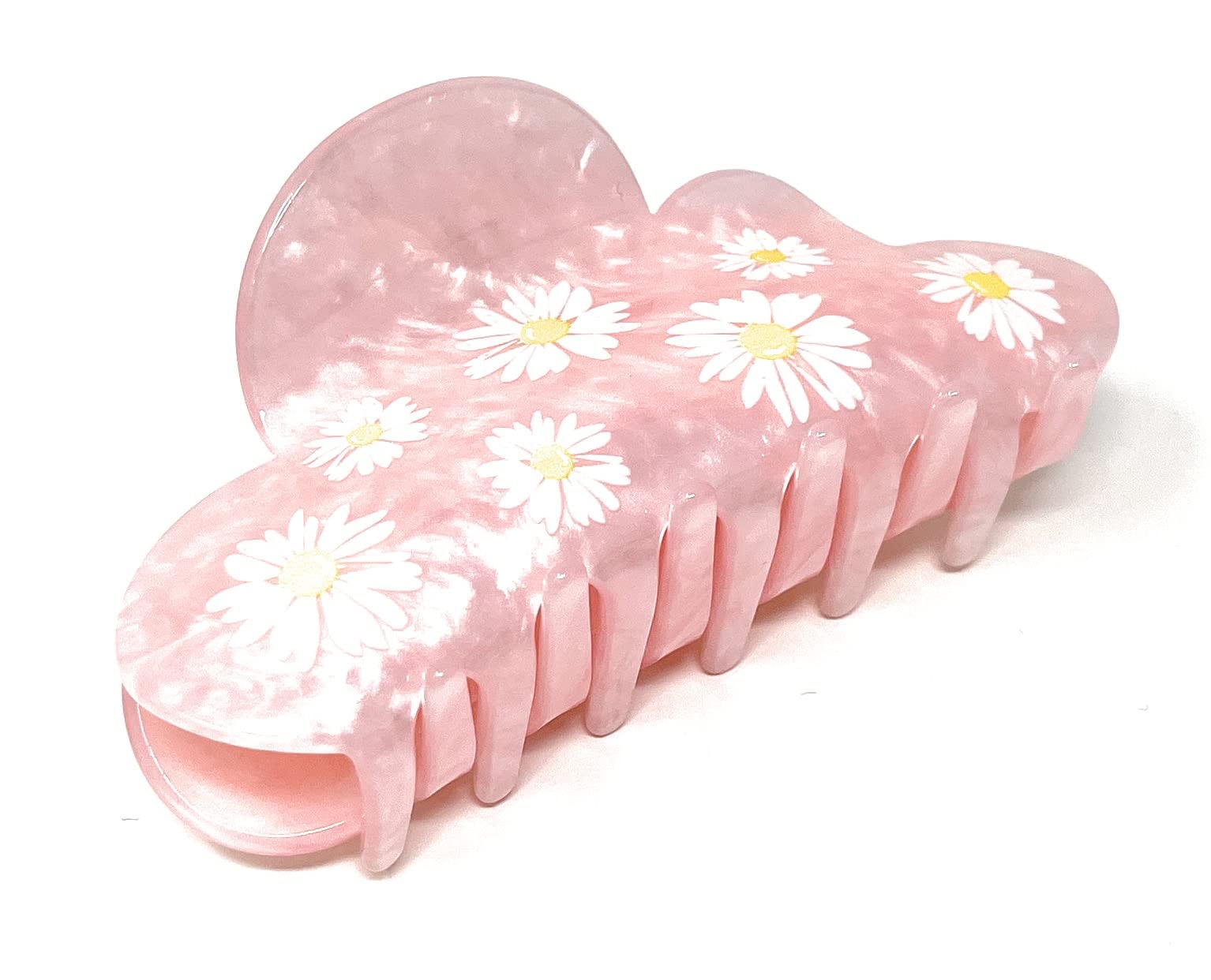 Super Chic Durable Claw Clips for Thin Medium Hair Hold - Styling Non Slip Updo - Accessories for Girls Women - Perfect for Curly or Straight (Pink Daisy)