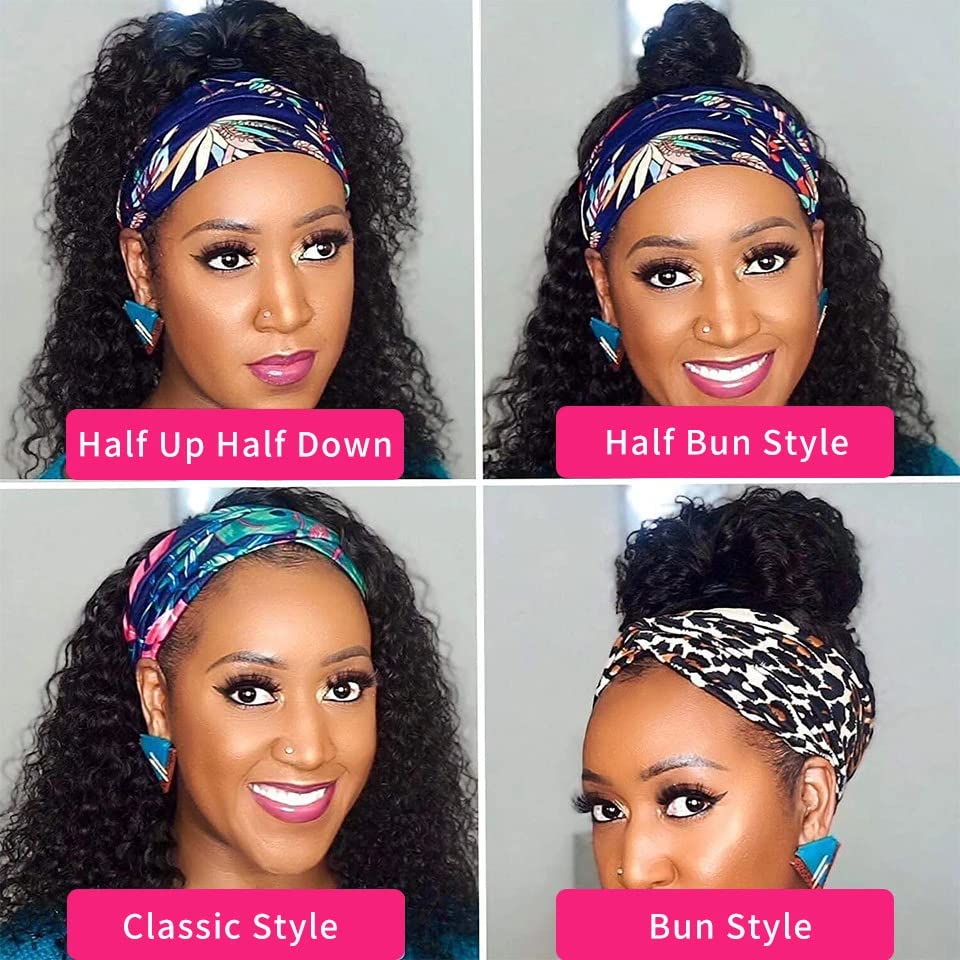 SUPERNOVA Headband Wig Human Hair Curly Headband Wigs For Women 180% Density Kinky Curly Headband Wig Human Hair Brazilian Glueless None Lace Front Wigs Hair(18inches)