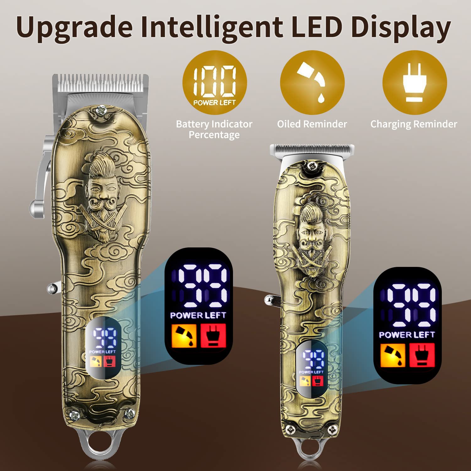 - Upgraded Smart Digital Display: Both hair clippers are equipped with digital display, it shows the remaining charge level as well as charging status and lubrication reminder indicators.