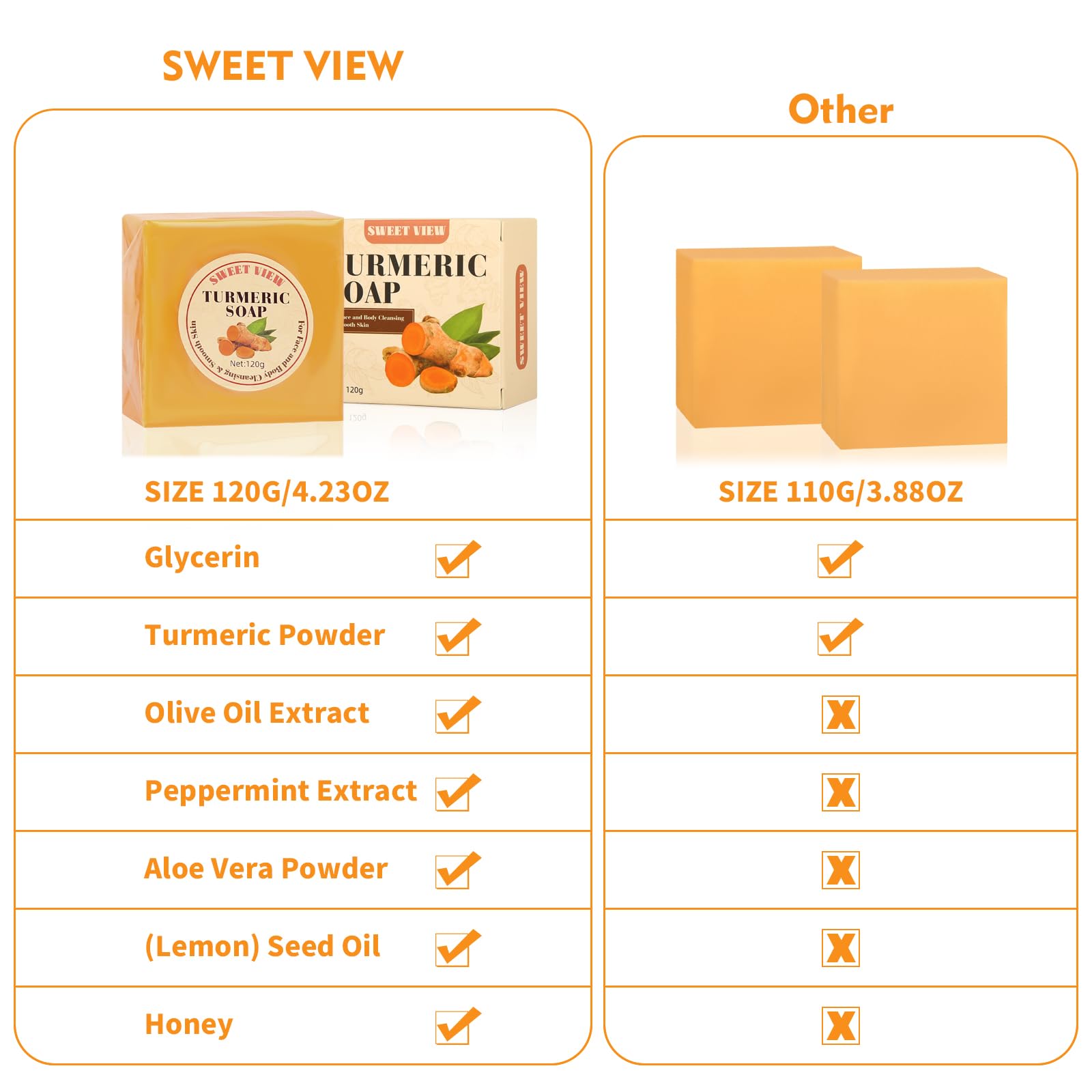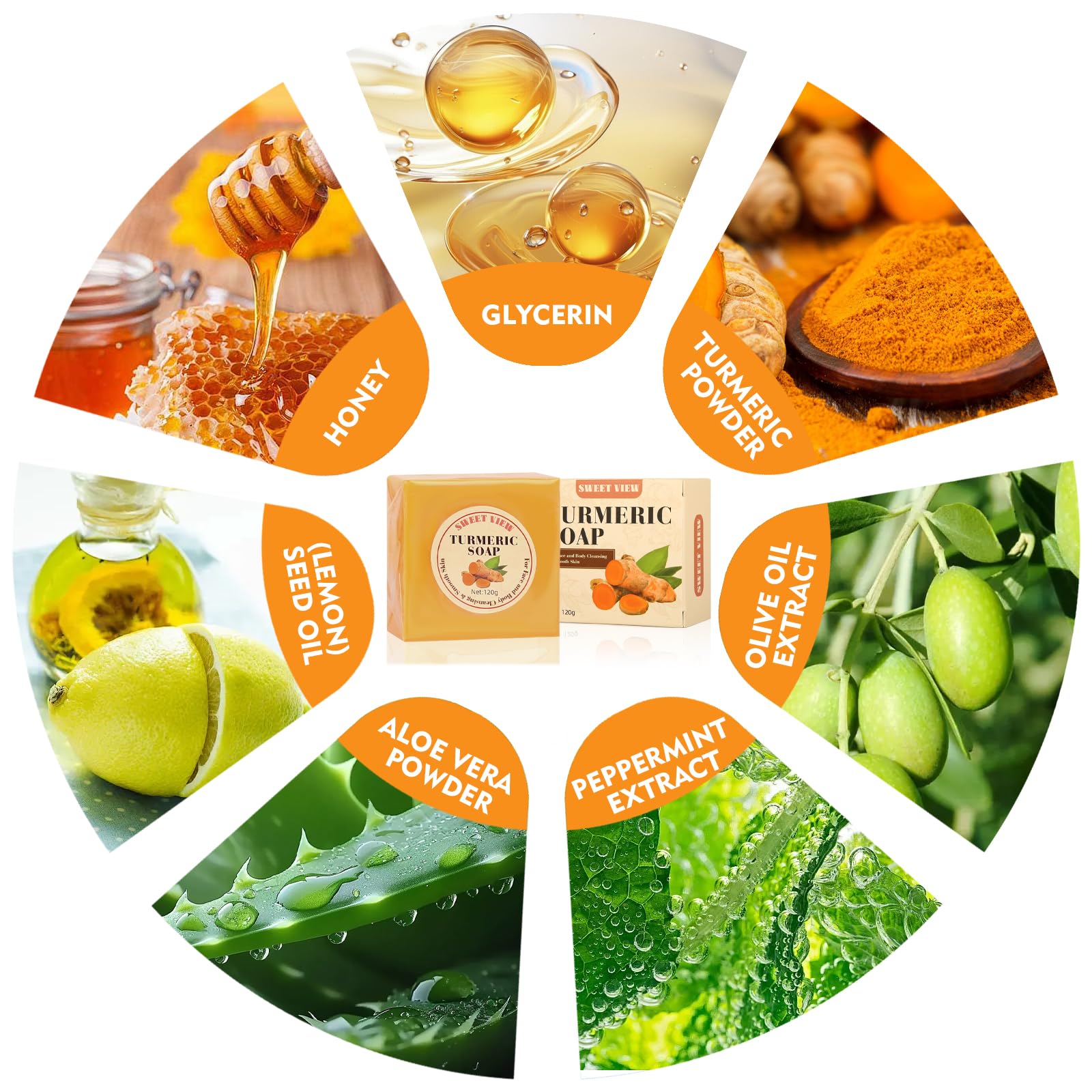 SWEET VIEW Turmeric Soap Bar, 4.23oz Face & Body Handmade Bar with Honey, Olive Oil, Aloe Vera for Deep Cleansing & Smooth Skin.