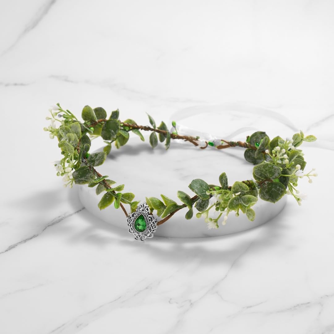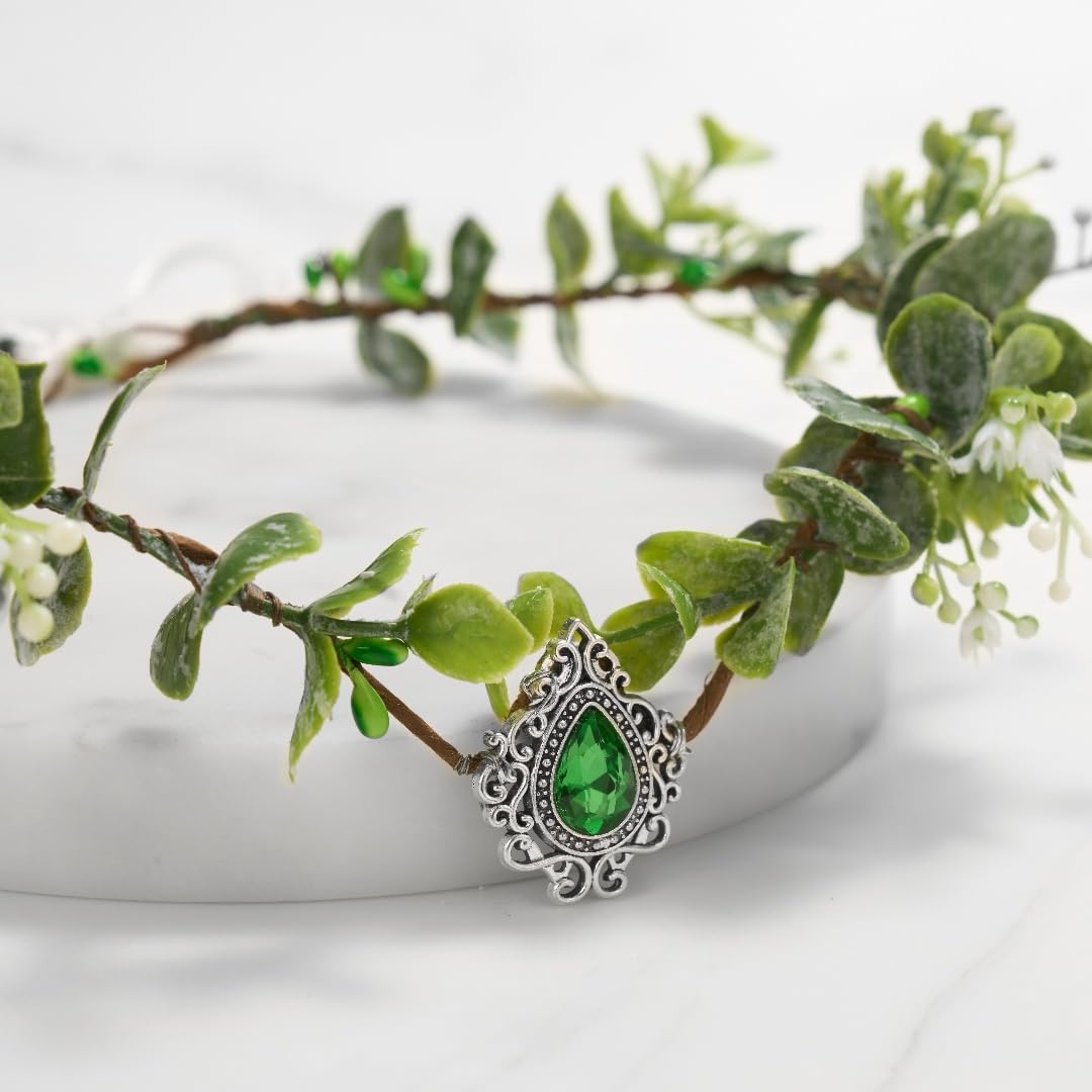 - 【Fairy Flower Crown】A handmade leaf headband with lustrous teardrop rhinestone. This simple but exquisite elf headpiece would be a great choice for women/girls.