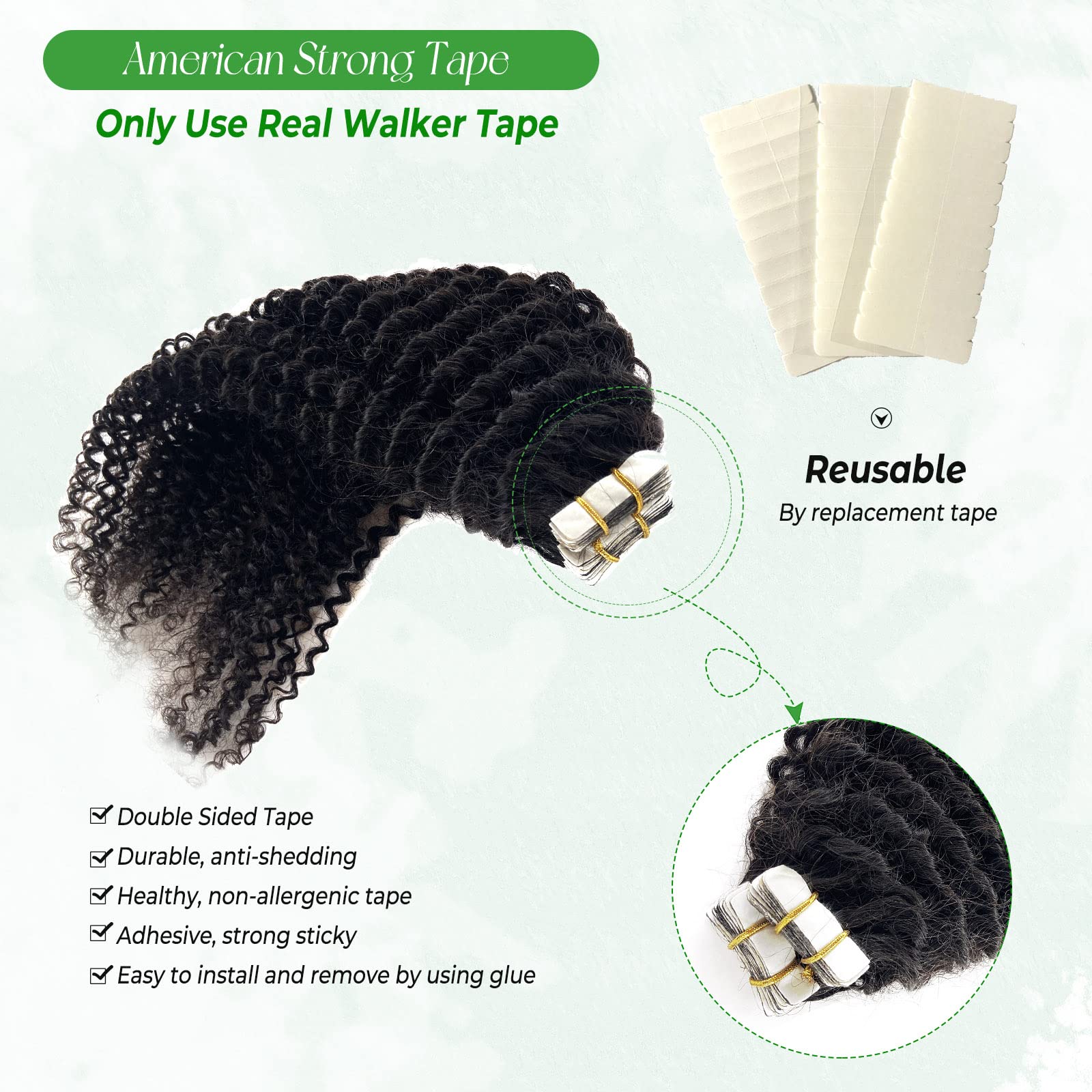 - 【Curly Tape in Hair Extensions】---Brazilian Kinky Curly hair extensions tape in human hair for Black Women, easy to blend with your hair. Seamless and Invisible Natural Hair Extensions Tape ins human hair can be re-used simply by adding new tape and completely invisible, just like the hair is growing from your own scalp, giving a natural and fashion hairstyle appearance.Tape will be much stronger after appropriate heating.