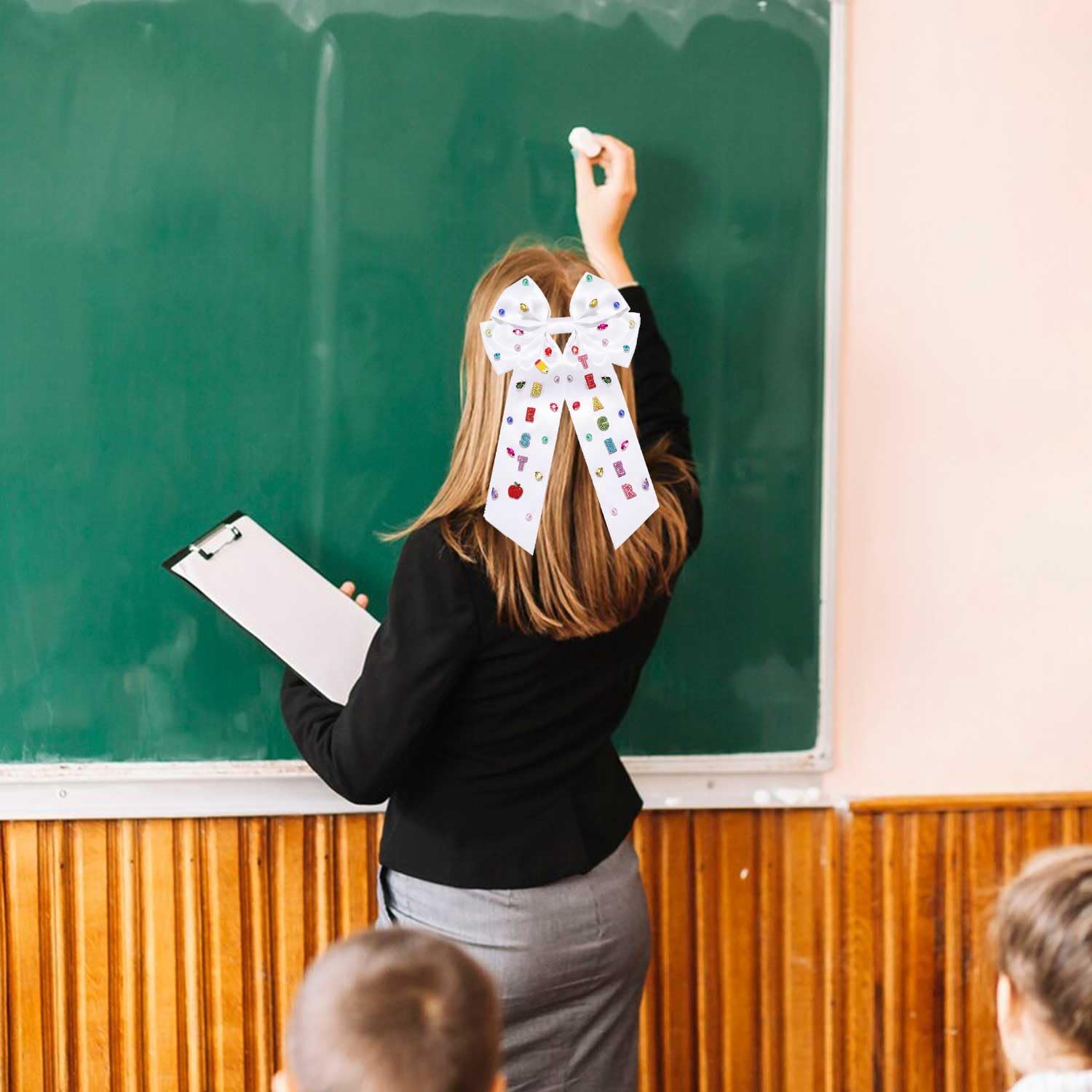 - 【Teacher Outfits Accessories】: For the person that taught you the things you need to succeed, we need something to express appreciation! These awesome teacher hair accessory exude style and elegance, symbolize the love, knowledge and dedication that teachers bring into the classroom, make you display you are a great teacher wherever you go. Pair these teacher hair ribbons clips with your back to school outfits, jazz up your style for back to school activities, open house or curriculum night!!