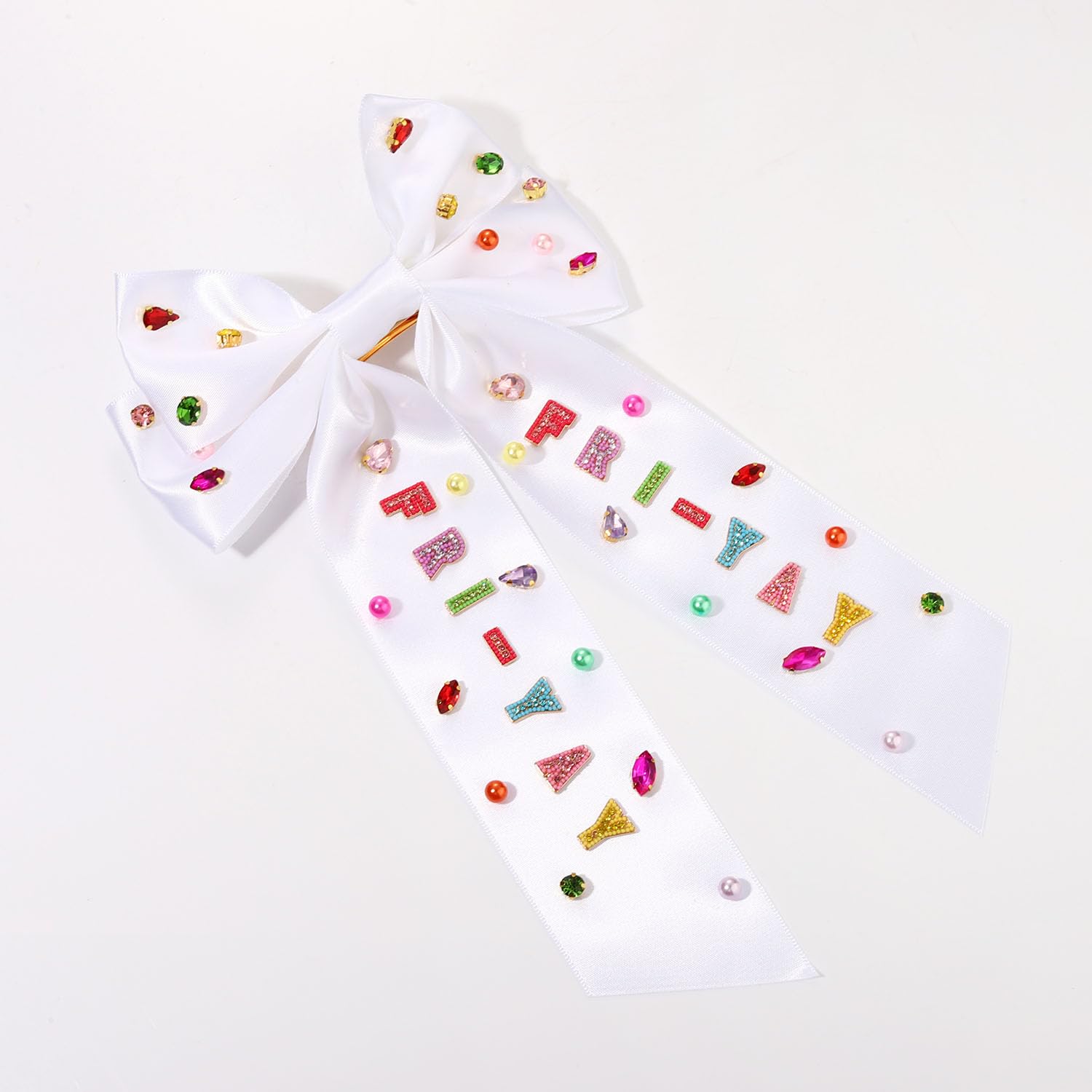 These silky satin white/pink hair bows feature classroom symbols like pencils, books, letter ‘ABC’, number ‘123’, and Fri-yay, embellished with sparkle rhinestone, to show appreciation for all they do.