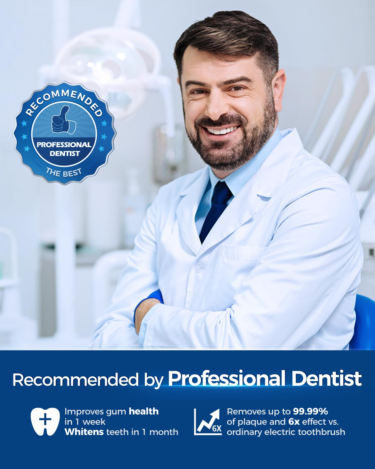 - 【4 Modes for Various Oral Care Needs】4 high-performance modes are designed to meet all your oral care needs and help maintain a healthy mouth. Whitening, Cleaning, Sensitive, Polishing, Massage. Whitening mode 100% teeth stain removing and tartar dislodging on teeth. Clean mode goes deep into the inter dental, cleans the dirt hidden in the periodontal. While massage mode offers a gentle massage of gums
