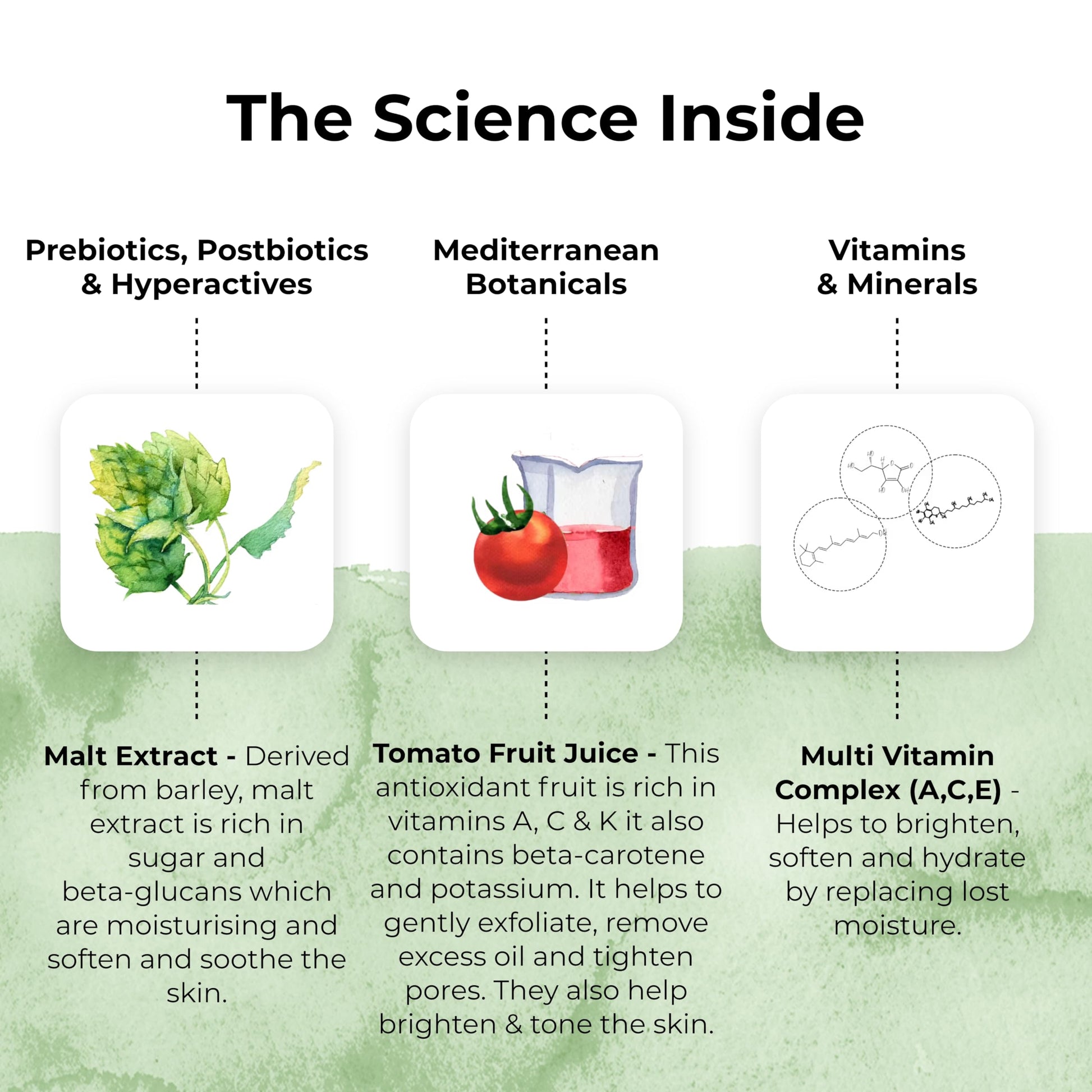 - Mediterranean ingredients of tomato, grapefruit, marjoram, wild yam and olive combine with vitamins and our high performance Combiderm complex to help bring balance - absorbing excess oil and rehydrating the drier areas at the same time.