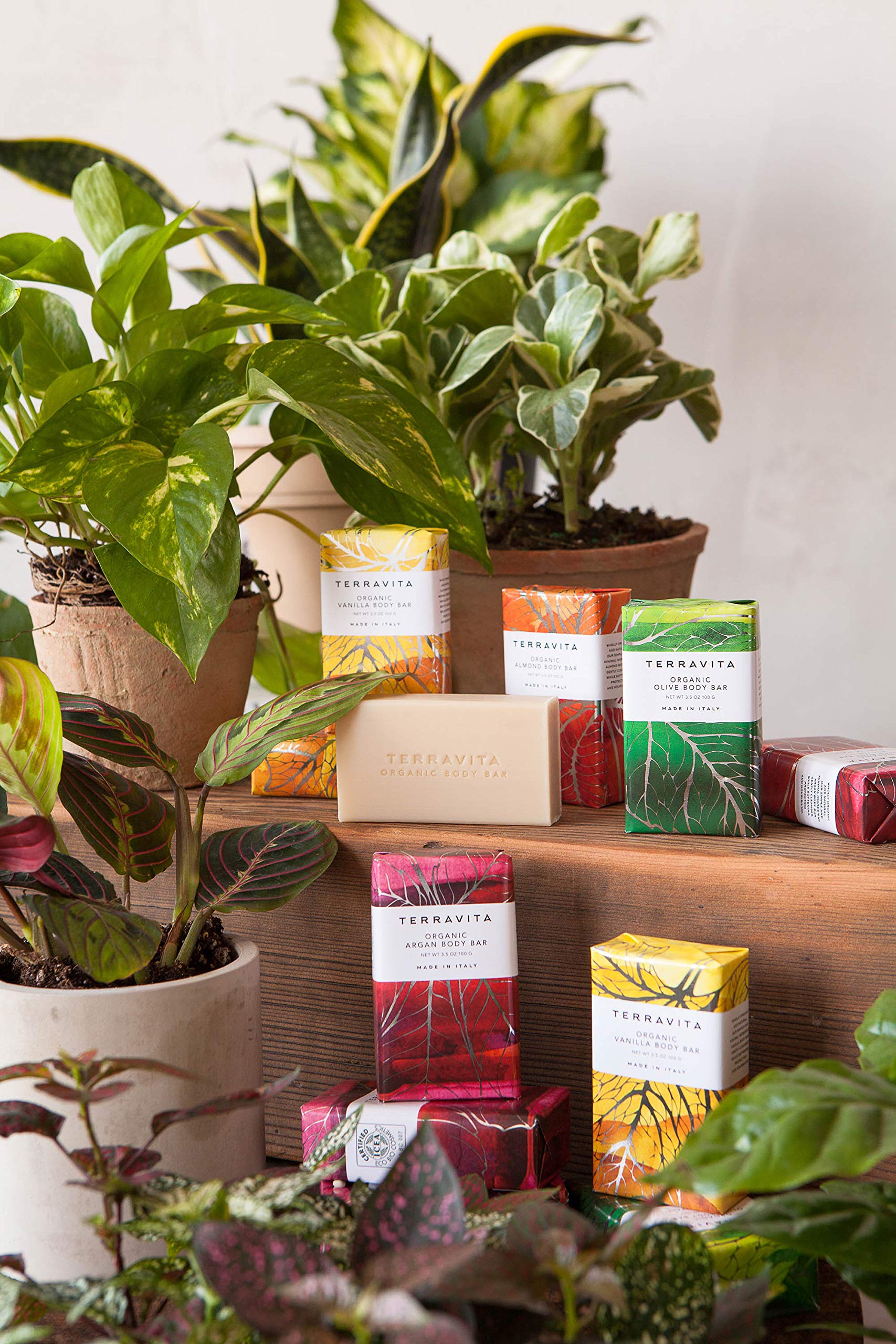 Details: Terravita Organic Body Bar (100g). Wholly organic and natural, our simple and minimal ingredient body bars gently cleanse, while softening, protecting and nourishing skin. Simply, the best. They are organic, vegan, and gluten-free without harsh chemicals. Made in Italy and certified organic by Italy's leading non-profit association; ICEA. This makes the perfect gifts for anyone. The variety of scents will definitely add to your bathroom or shower. The beautifully designed packaging is a work of art in itself ready to be gifted.