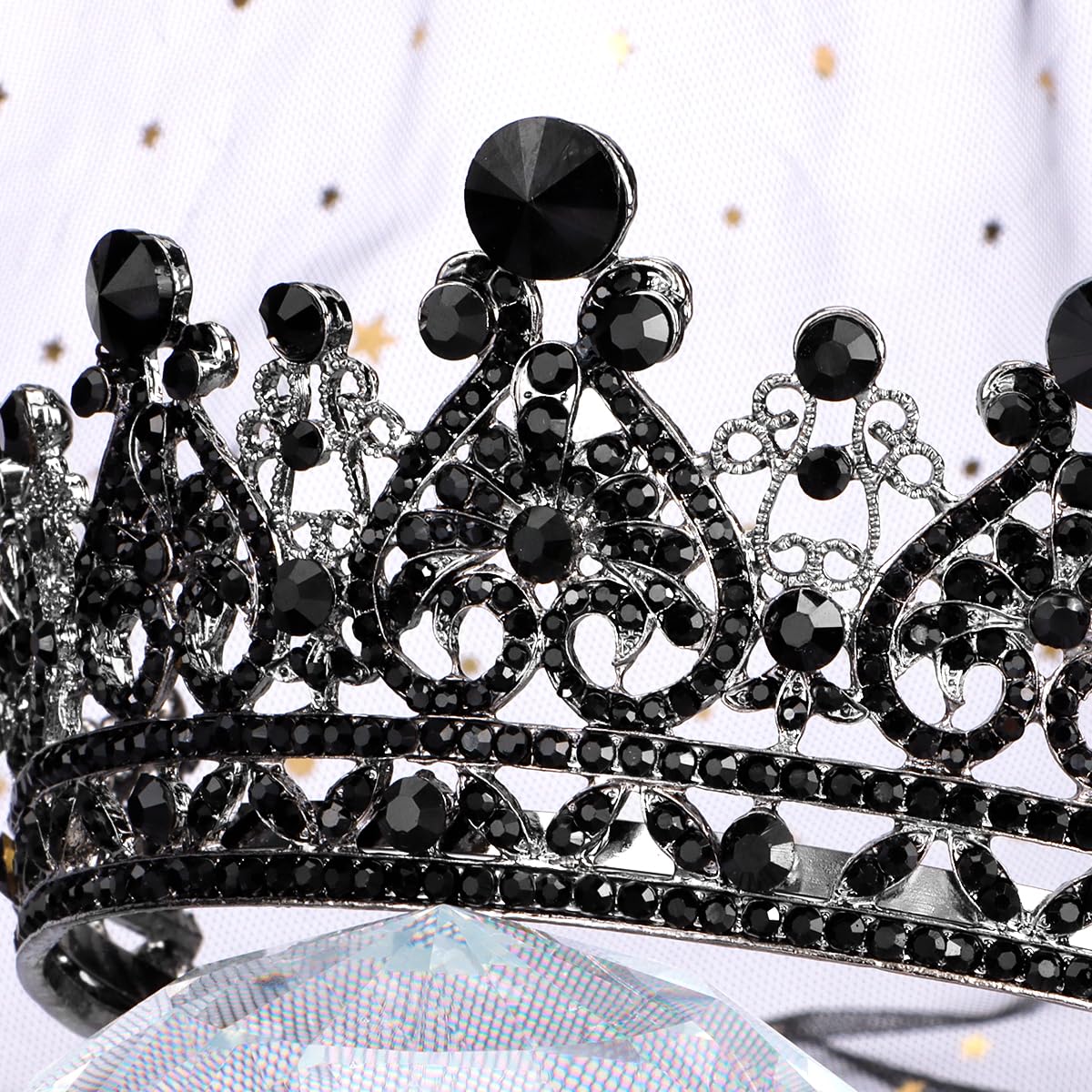 - ♕ Size - Luxury black tiara is approximately 2.6 inches in height, 5.0 inches in diameter. Perfectly suit for any age women and teen girls. This crown is suitable as a traditional crown for adult women.