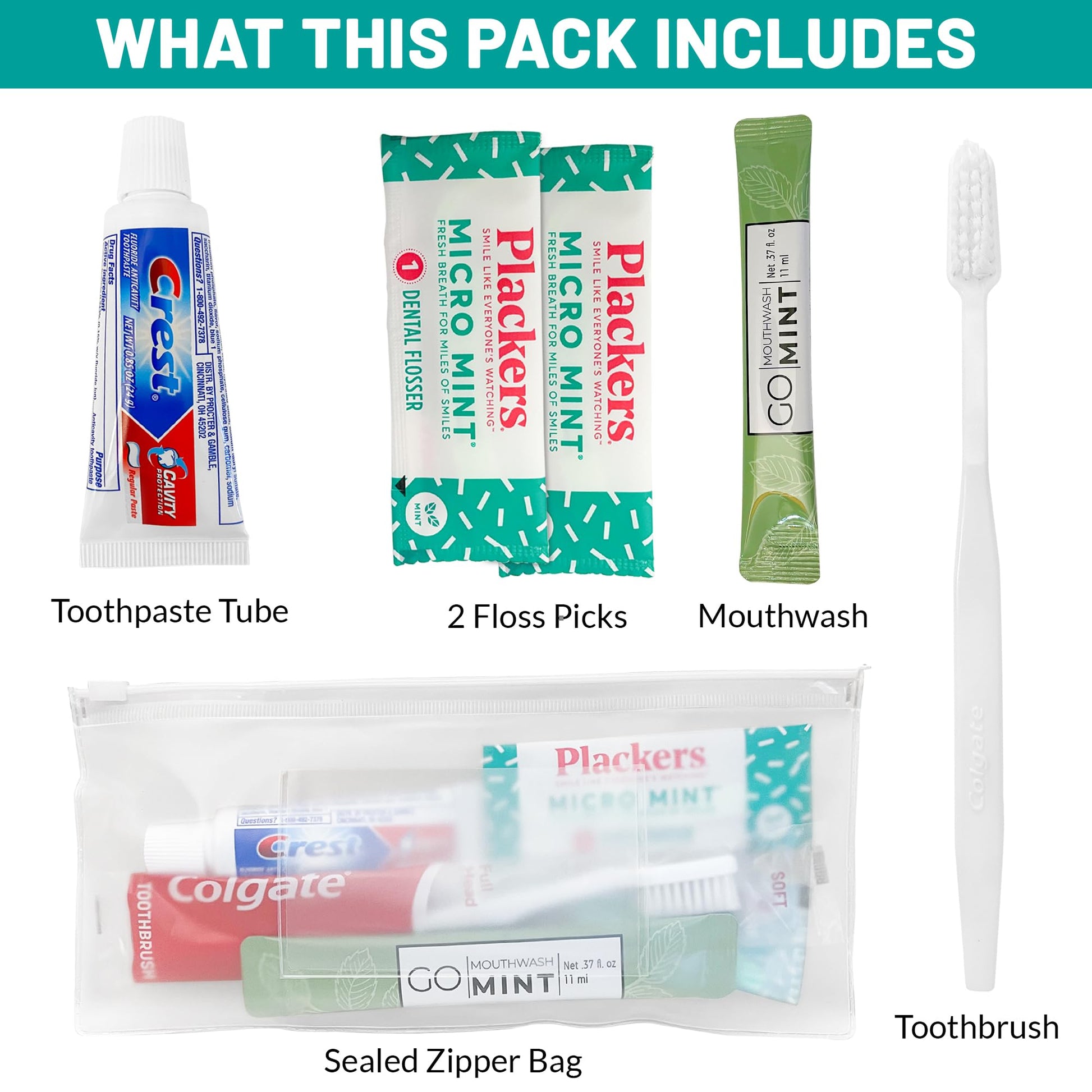 Travel-Sized Adult Dental Care Kit Bulk, TSA-Compliant Oral Care Bag Includes a Toothbrush, Floss Picks, Toothpaste, and Mint mouthwash