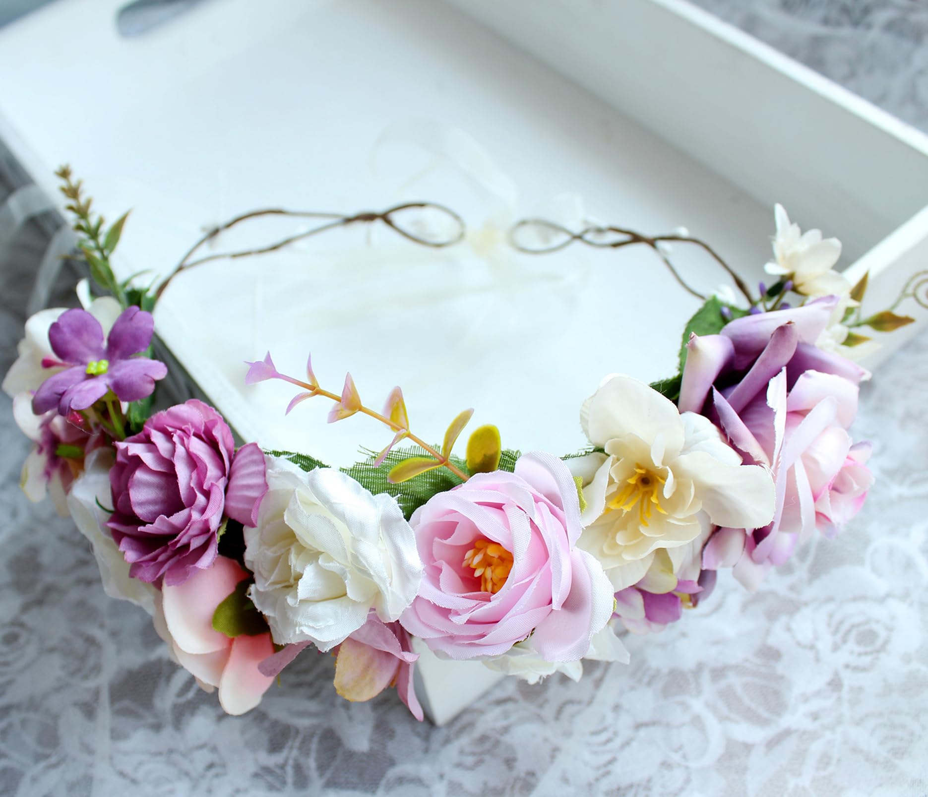 - Size of fairy flower headband: Adjustable size with the ribbon, it fits most head size. Easy to put on.