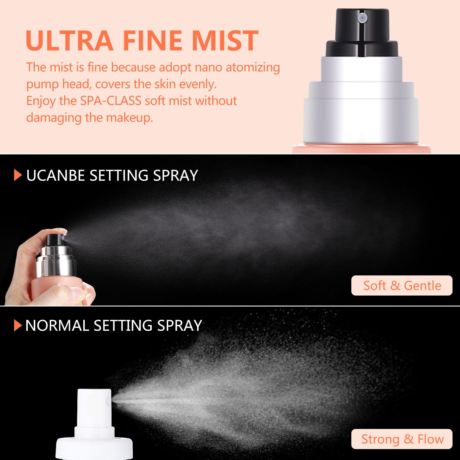 - 【ULTRA FINE MIST SPRAY】The nano atomizing nozzle has a superior atomization effect, evenly covering the skin. Fast film formation, won't damage your makeup. Works with all face makeup including foundation, eyeshadow, blush and concealer, and keeps color fresh.