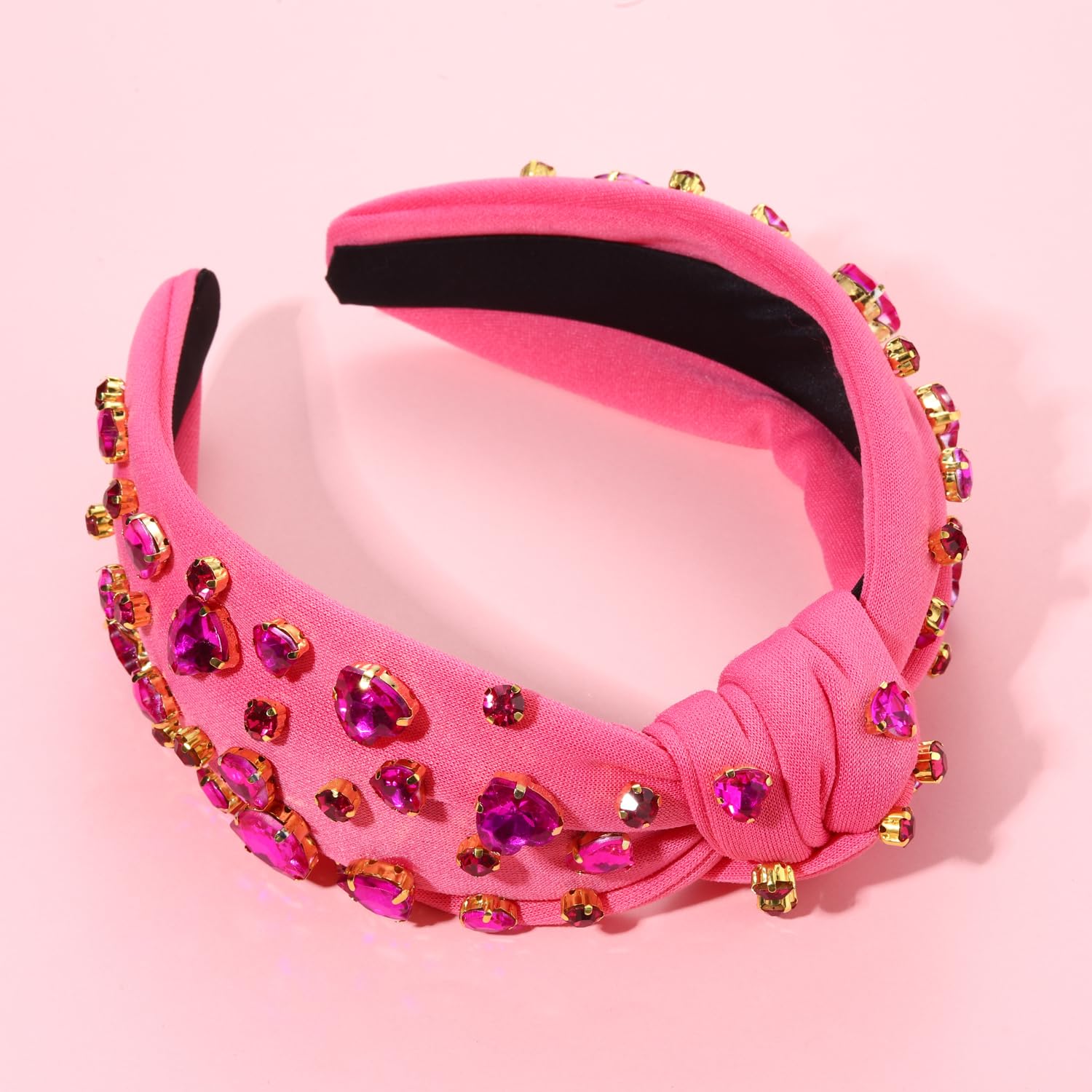 Valentine’s Day Heart Headbands for Women Valentine’s Day Accessories Jeweled Beaded Heart Knotted Headband Pink Red Rhinestone Wide Top Knot Headband Valentine Party Favors Gifts (Heart Headband 3)