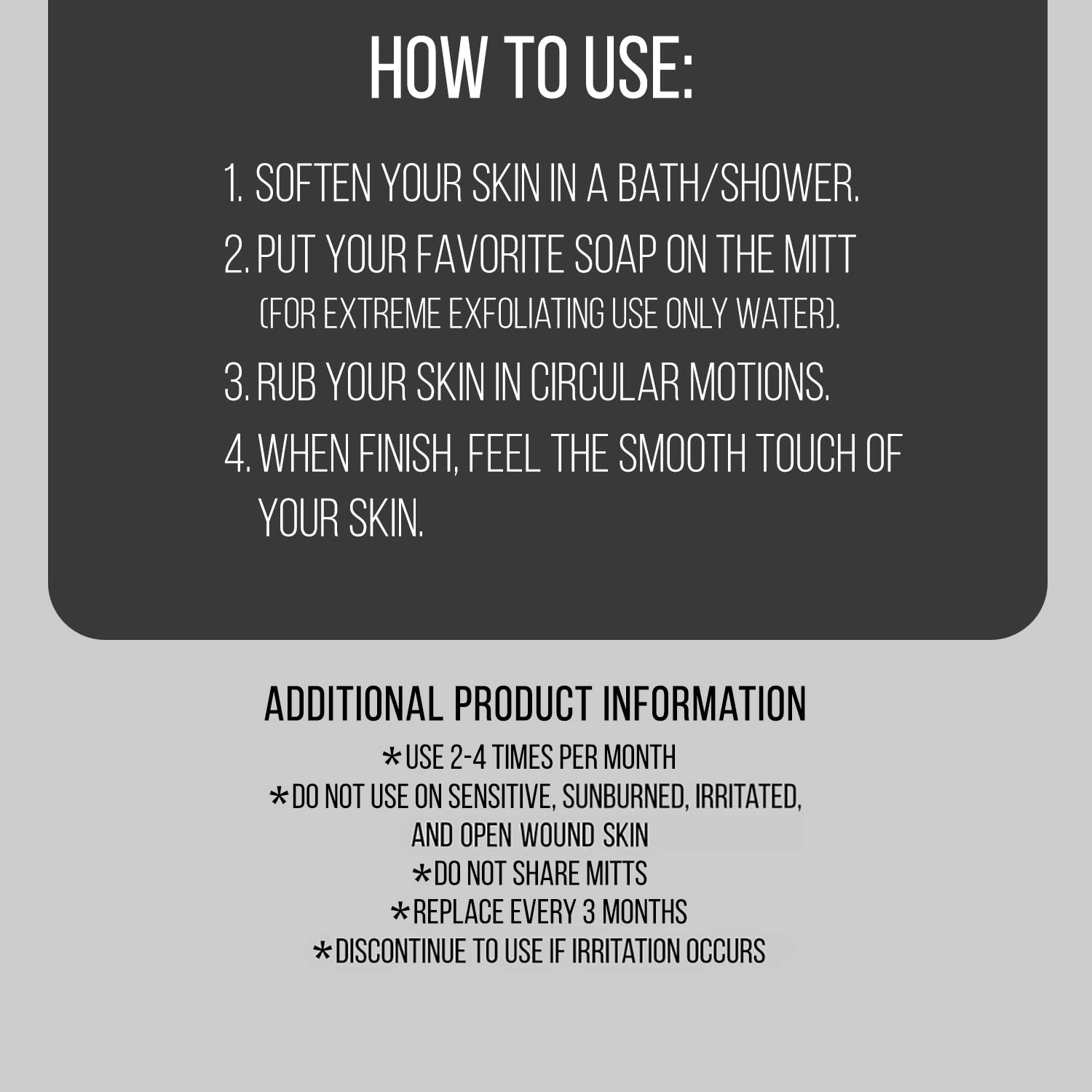 - 100% viscose construction of microdermabrasion mitt used in korean spa at your home