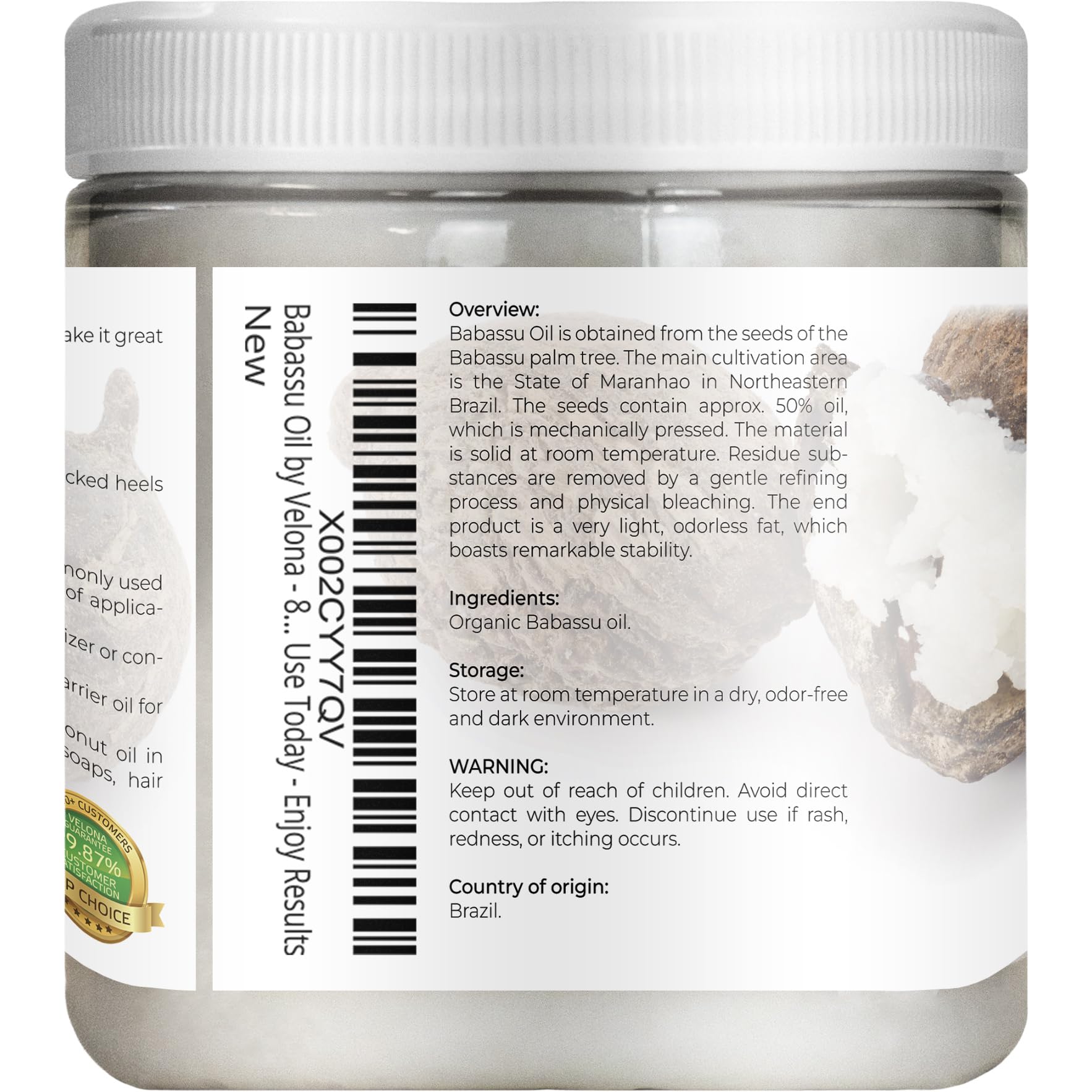 velona Babassu Oil USDA Certified Organic - 8 Fl Oz | 100% Pure and Natural Carrier Oil | Refined, Cold Pressed | Face, Hair, Body & Skin Care and Cooking | Use Today - Enjoy Results…