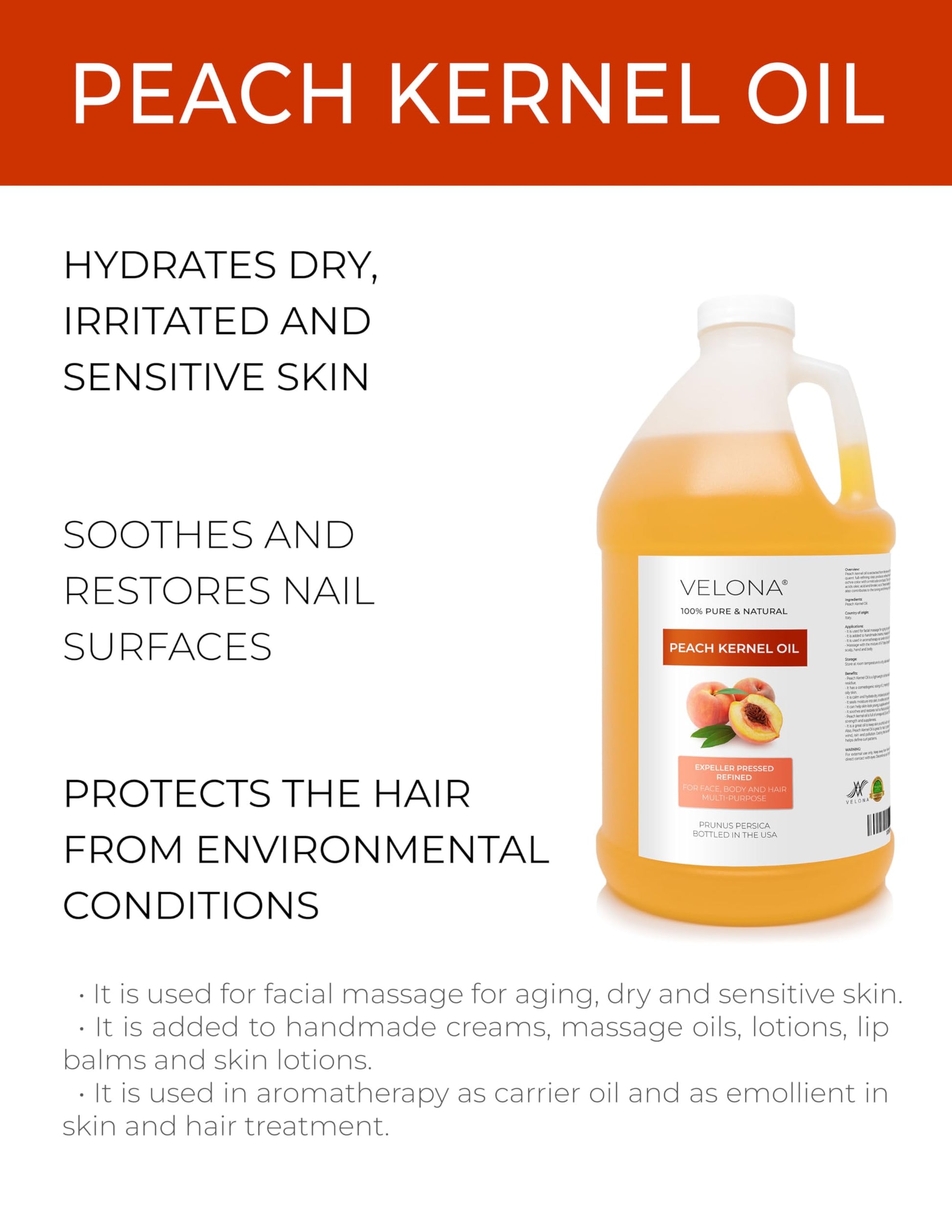 velona Peach Kernel Oil 1 Gallon / 128 Fl Oz | 100% Pure and Natural Carrier Oil | Refined, Cold pressed | Cooking, Skin, Hair, Body & Face Moisturizing | Use Today - Enjoy Results