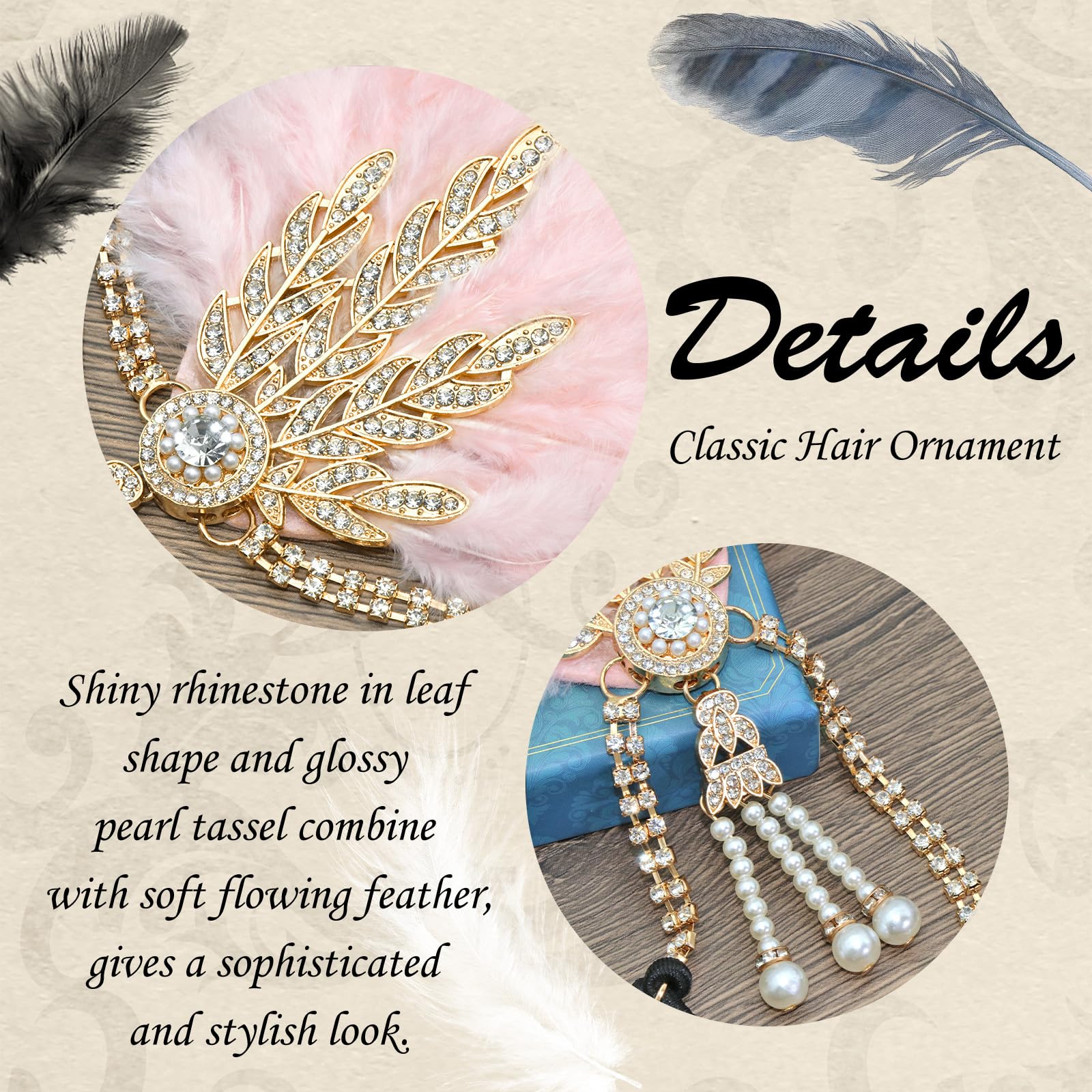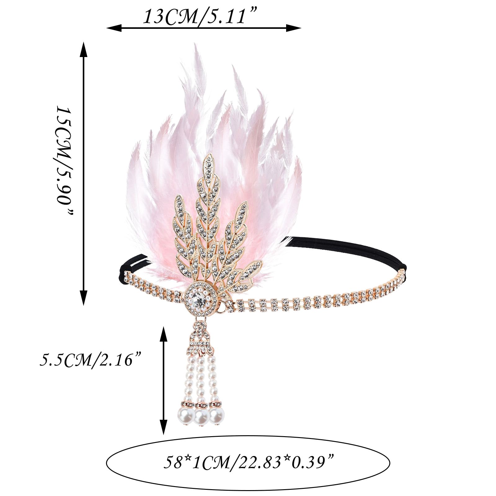 - Exquistie Design:Gatsby style headband is made of high-sparkle crystal,rhinestones chain and flowing pink feathers with beaded leaf.Black stretch headband with rhinestone tassels gives a sophisticated and stylish look.