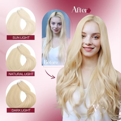 Vivien Tape in Hair Extensions Human Hair 22 Inch Blonde Human Hair Tape in Extensions Bleach Blonde #613 Tape in Hair Extensions Real Human Hair Double Sided Tape for Skin Weft 20pcs 50g