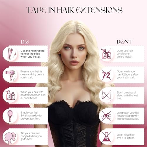 - 【Seamless Application】: Designed with seamless technology, these tape in extensions blend seamlessly with your natural hair.Provides an undetectable look effect.Vivien tape in hair extensions human hair are double sided tape with strong adhesive and hypoallergenic. It can be reapplied over and over again. And each pack of hair comes with extra replaceable tapes.