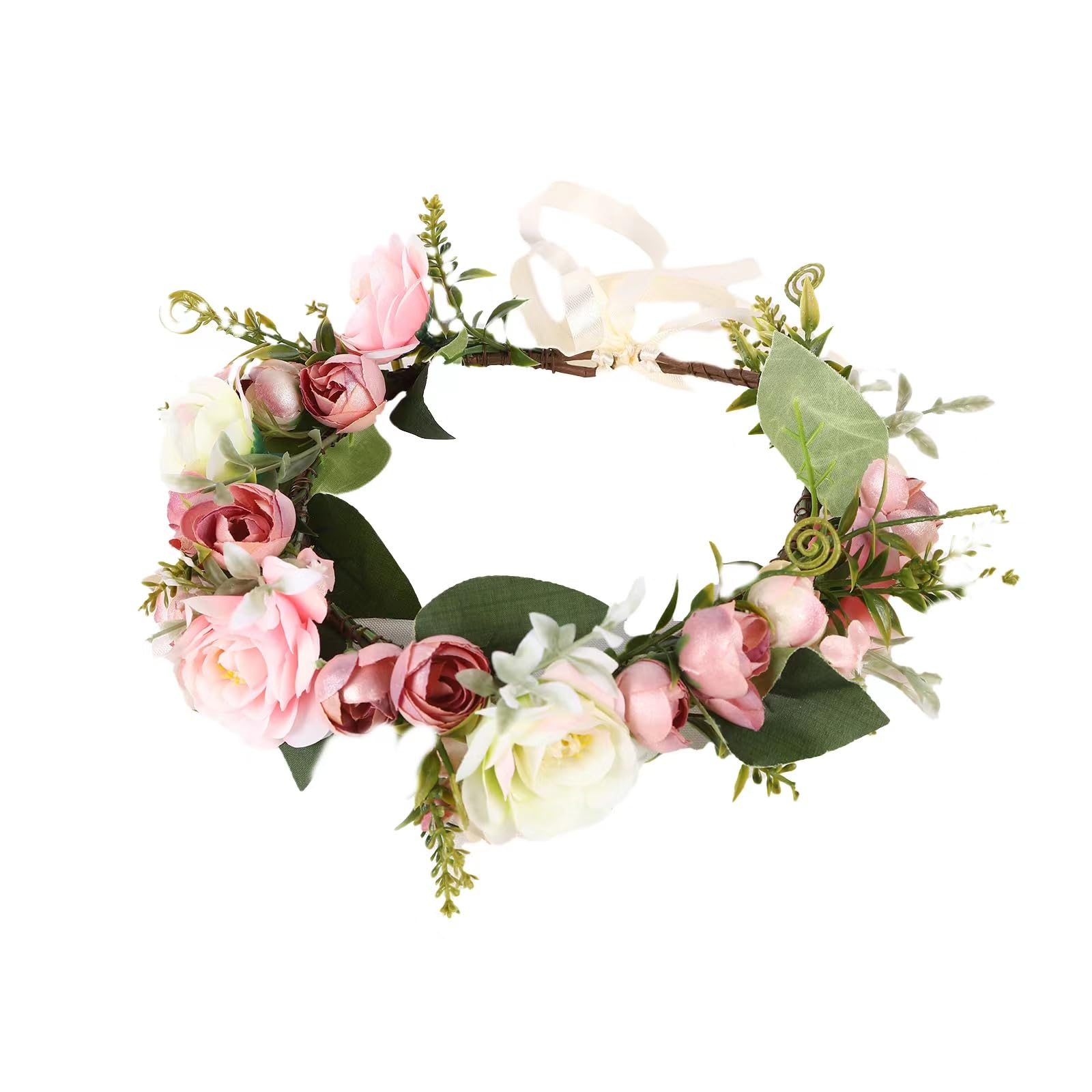 Vivivalue Women Floral Crown Girl Flower Headband Hair Wreath Floral Headpiece Halo Wedding Party Photos Pink