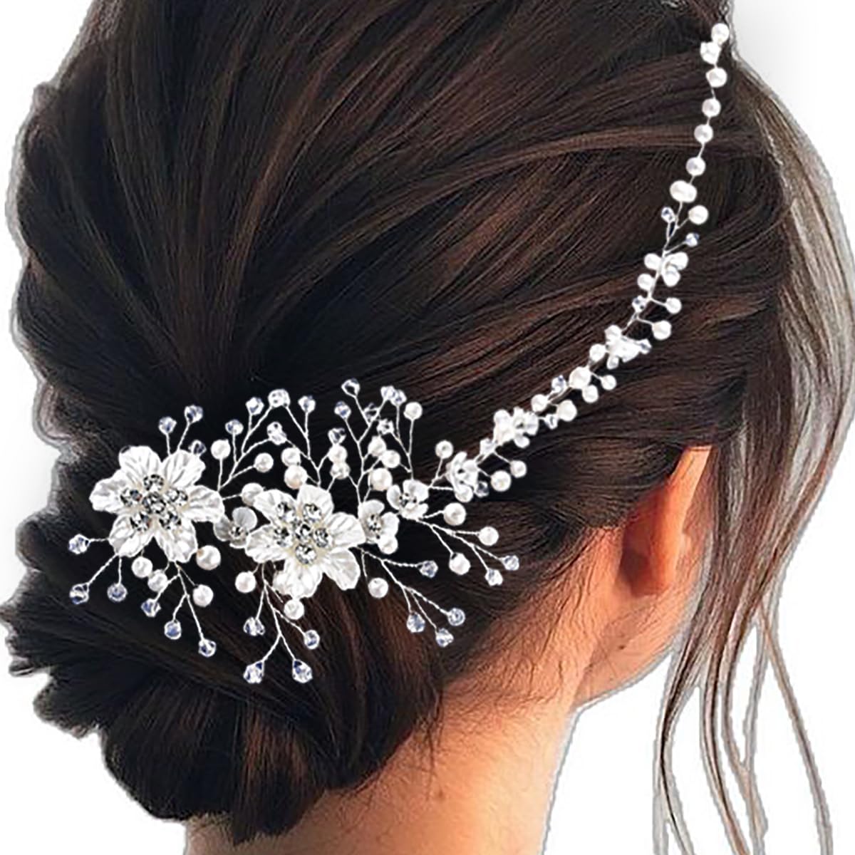 - Pearlescent Perfection: Elevate your bridal elegance with our Pearl Bridal Hair Accessories. Immerse yourself in the timeless allure of pearls and floral accents, creating a captivating and sophisticated look for your special day.